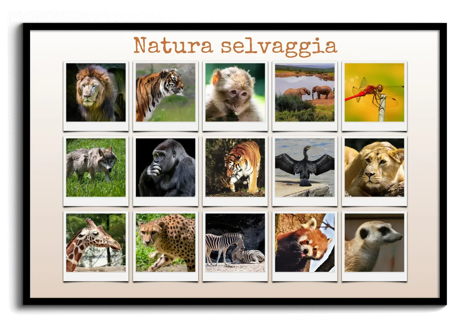 Crea una collage Polaroid di animali selvatici e personali con testi unici