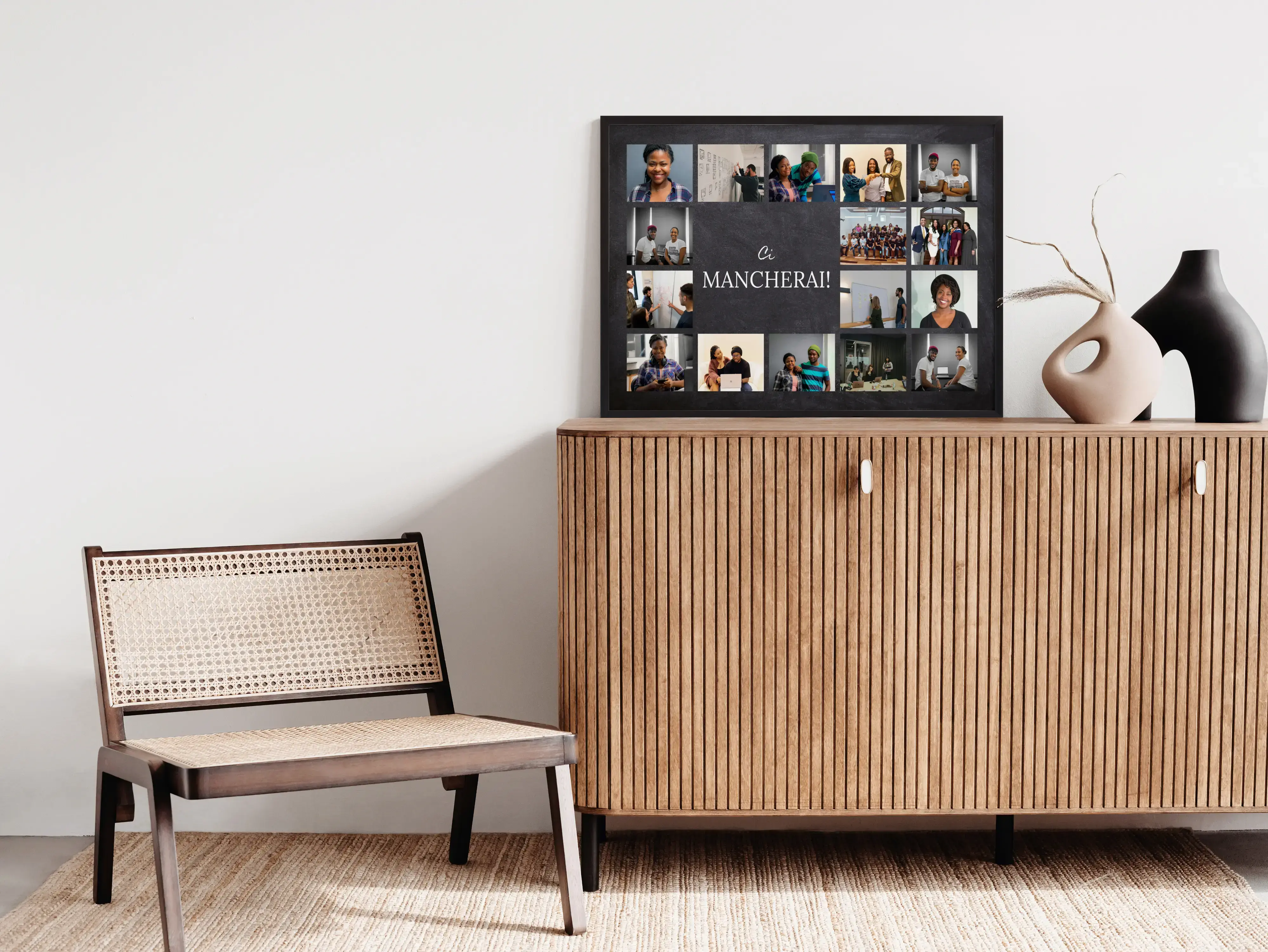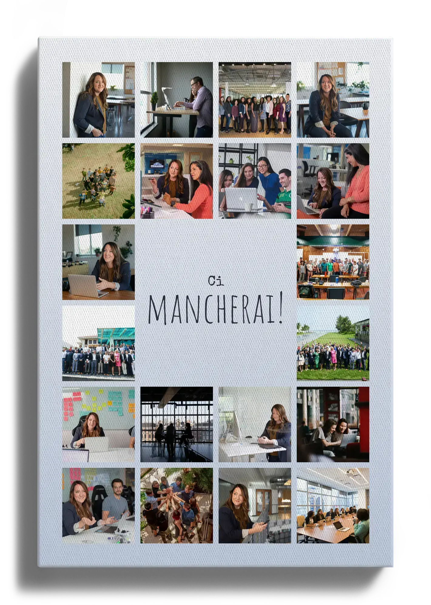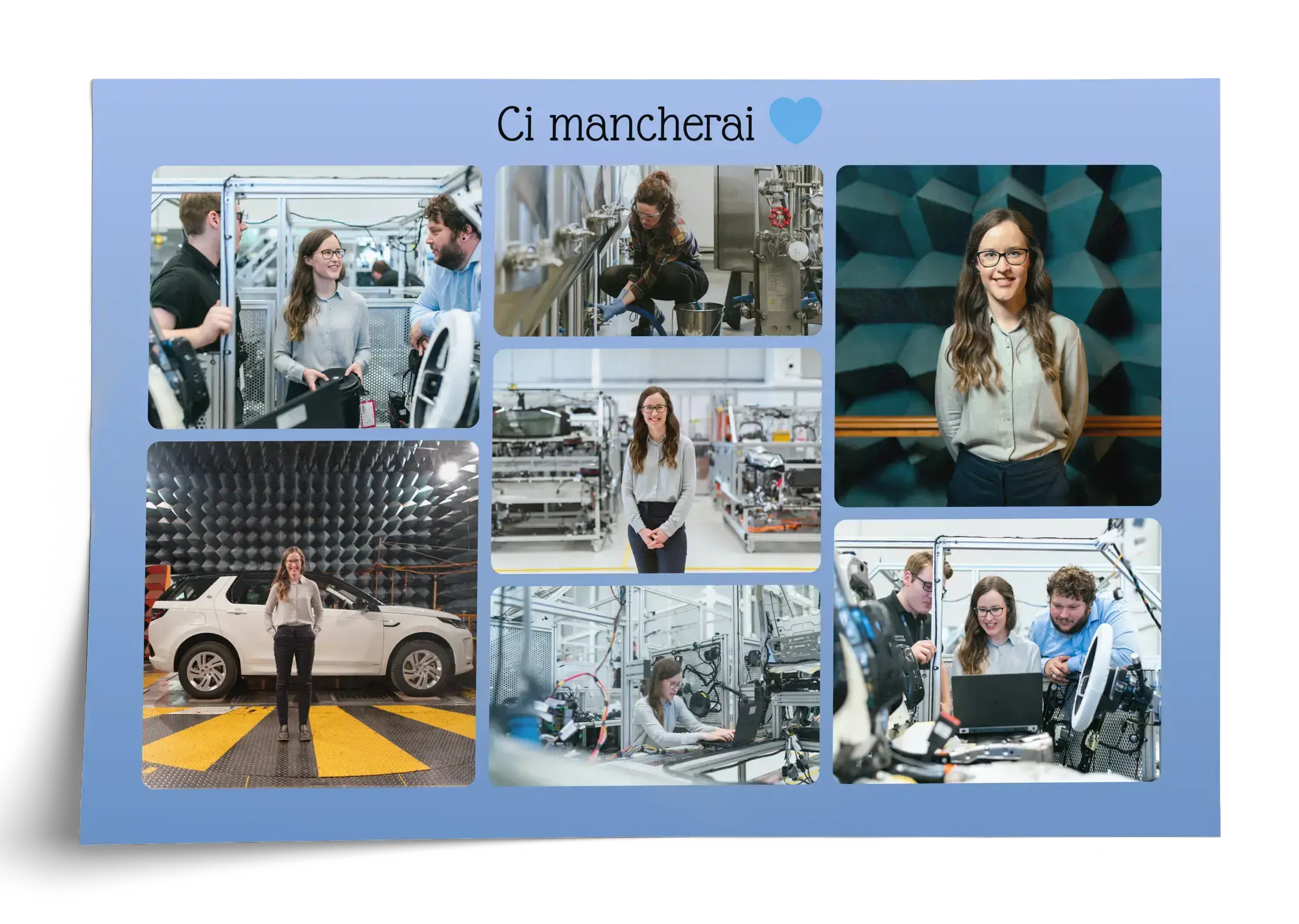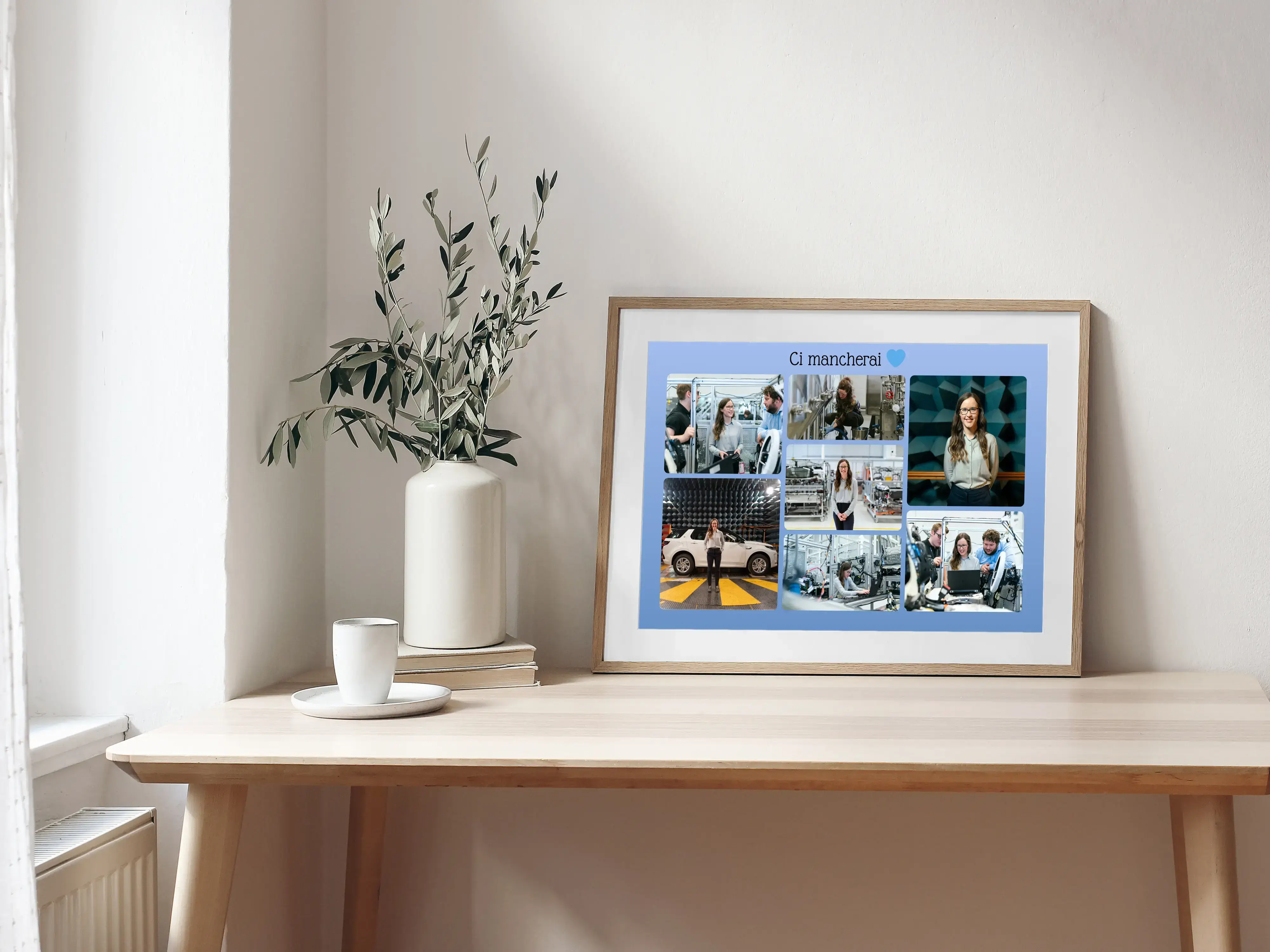 Crea subito il tuo regalo di addio e ordinalo in pochi minuti: una composizione con tante foto del team che incorniciano un messaggio centrale come Vi mancherai, per dire grazie e lasciare un ricordo pieno di stima. Puoi aggiungere i vostri scatti migliori e un saluto personale, perfetto da firmare come gruppo.