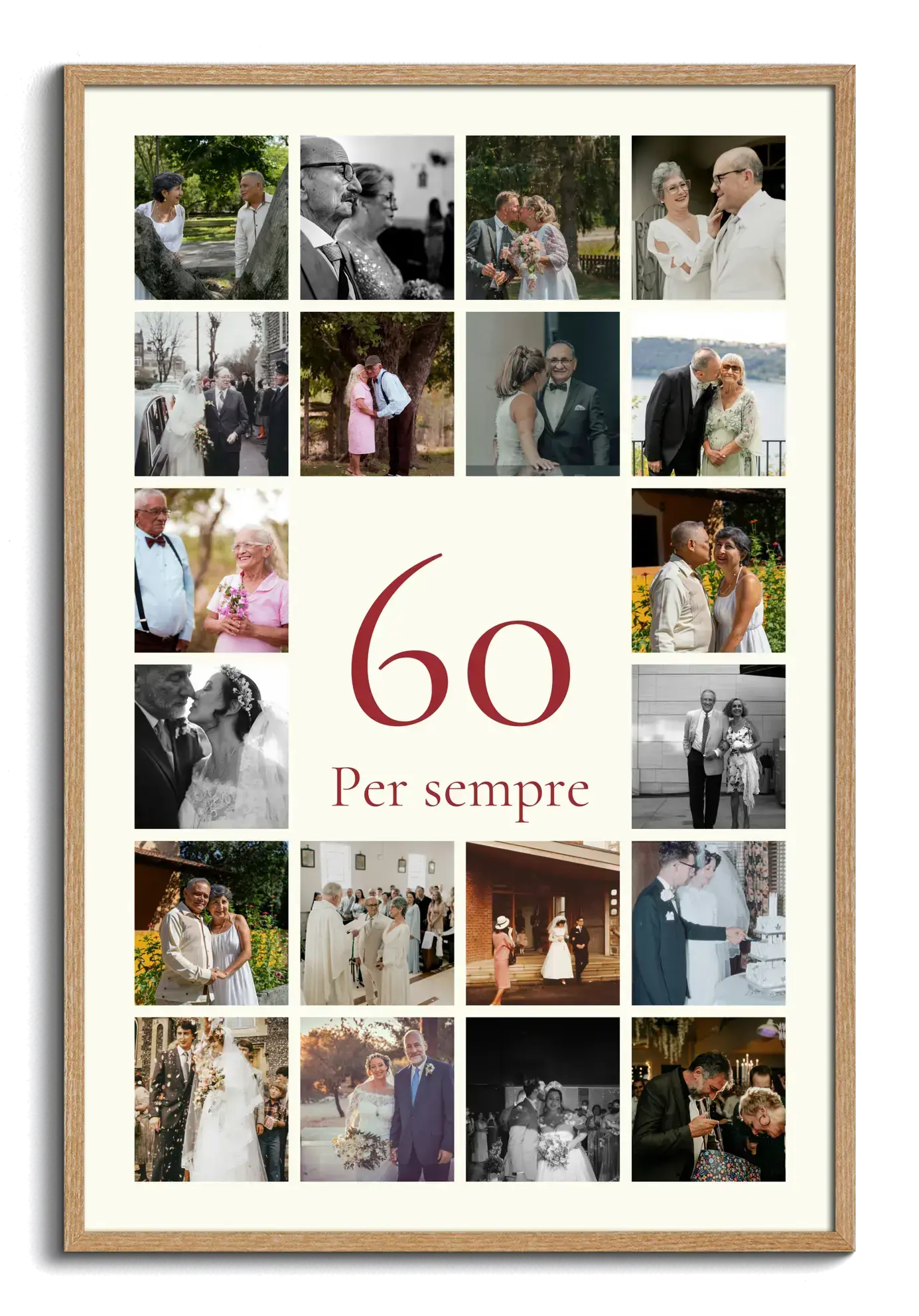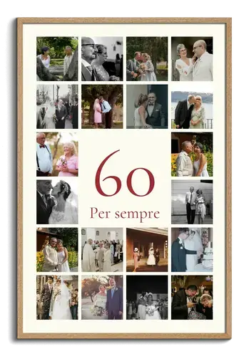 Ideale per 60° compleanno, nozze di diamante o pensione: collage 60 personalizzabile.