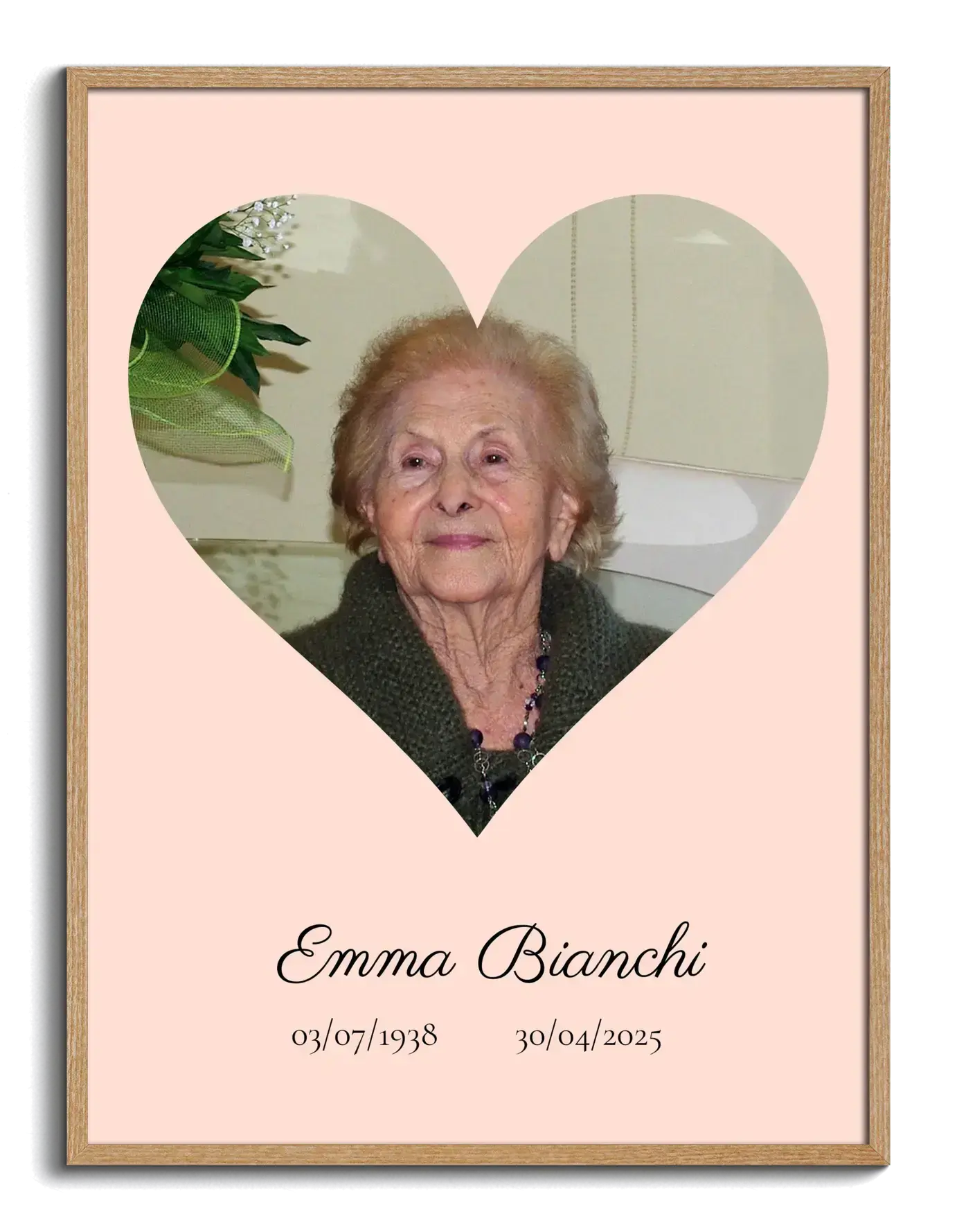 Collage commemorativa a forma di cuore personalizzabile per un ricordo eterno.