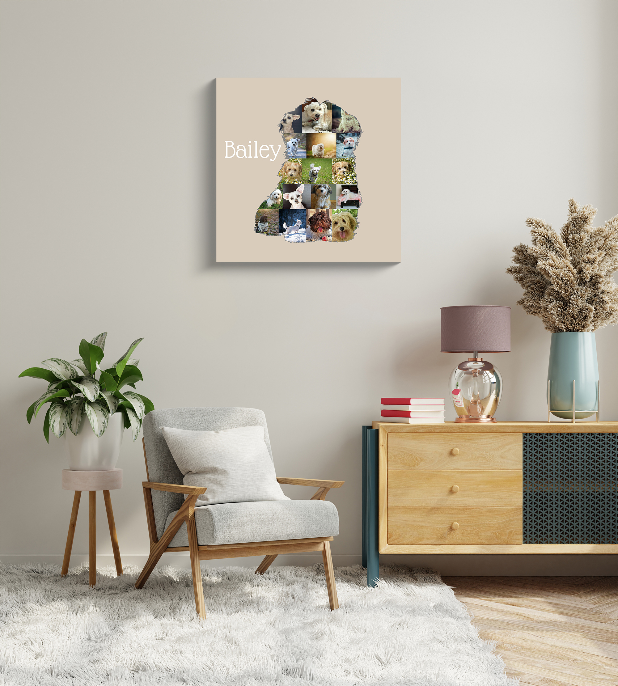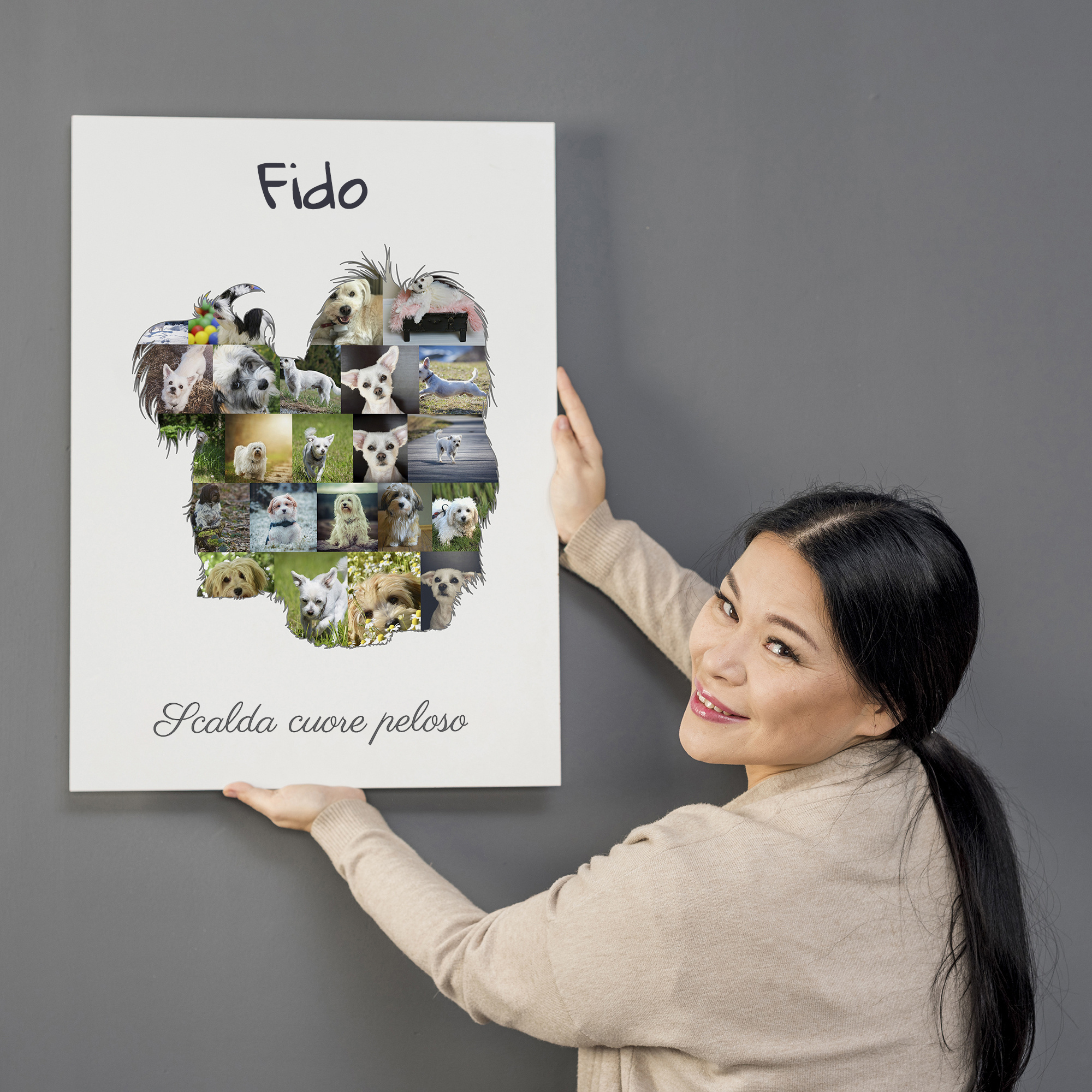 Scatena la tua creatività e dai vita ai tuoi ricordi con una fotocollage personalizzata. Specialmente progettata per i proprietari di Havanese, la sagoma di un Havanese seduto o in piedi può essere riempita con 15-20 delle tue foto preferite, arricchita da un testo personalizzato. Perfetta come decorazione unica per la casa o come regalo speciale per amici e famiglia.