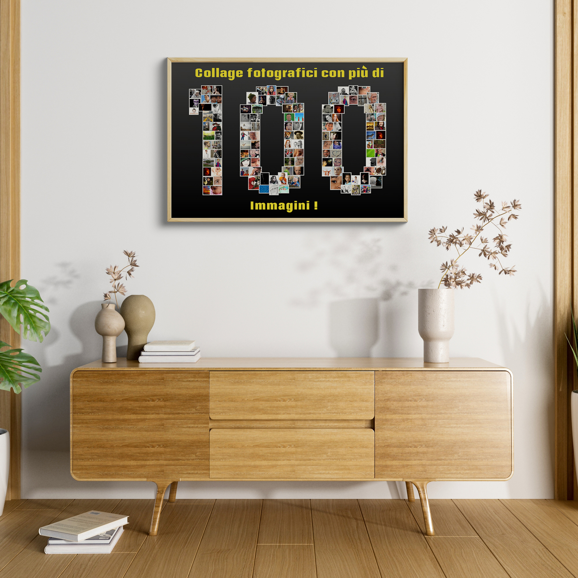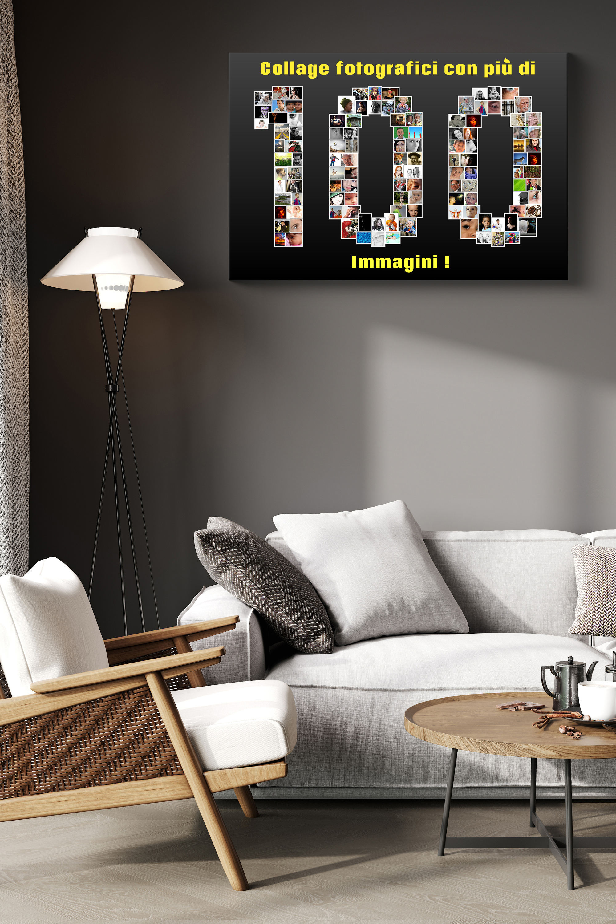Crea la tua fotocollage personalizzata e rendi indimenticabili i tuoi momenti speciali. Immagina una composizione unica come una collage a forma di 100, con ogni piccolo frammento raffigurante un pezzo della tua storia. Con oltre 100 immagini, puoi mettere in risalto un anniversario, un successo o semplicemente creare un'indimenticabile opera d'arte personale.