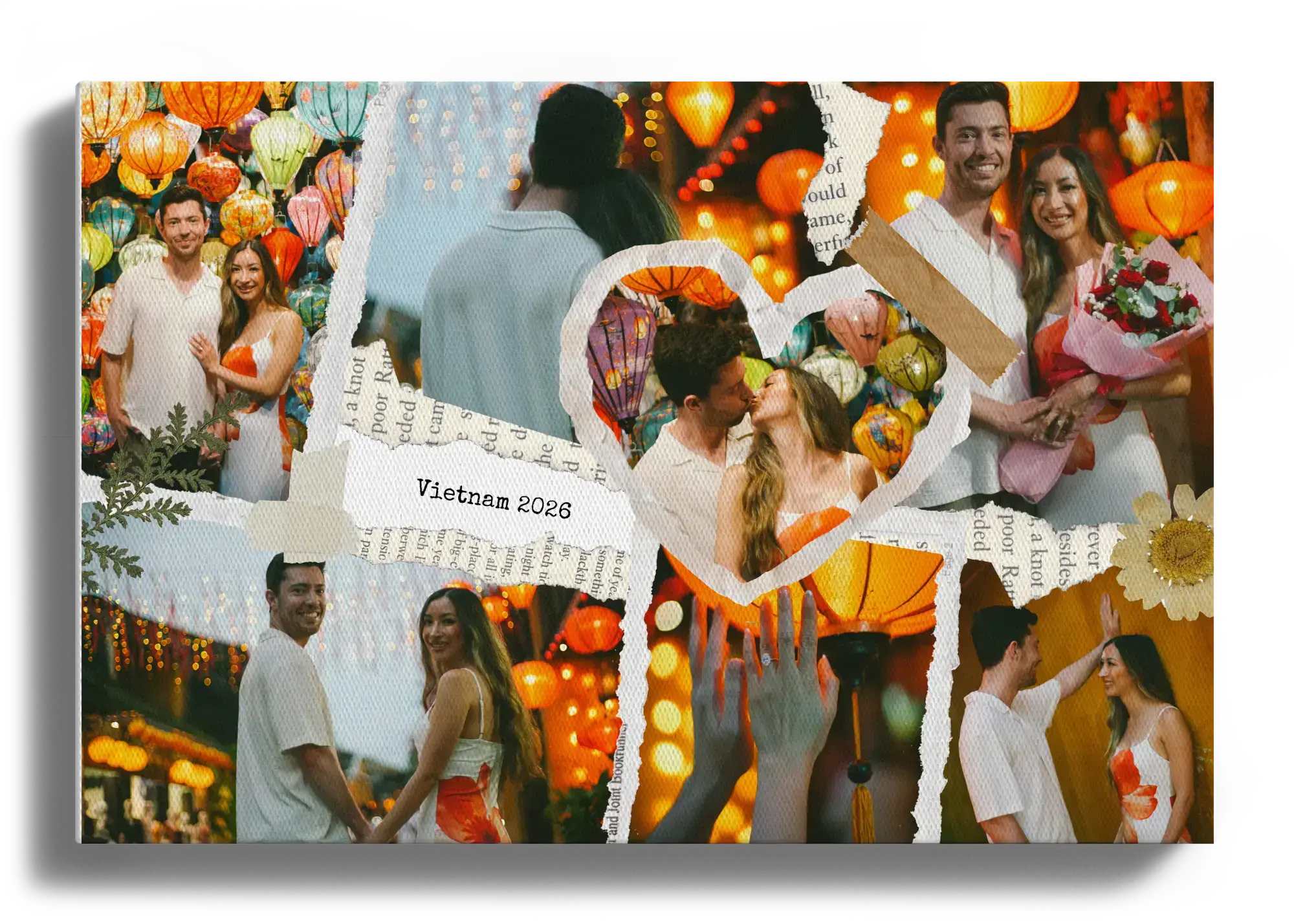 Crea ora il tuo poster artistico personalizzato in stile scrapbook dedicato alle vacanze. Le foto vengono combinate come ritagli di carta, con elementi tape, piccoli dettagli decorativi e scritte dall’effetto manuale come luogo, anno o una breve frase per raccontare ricordi di viaggio in modo caldo e creativo.