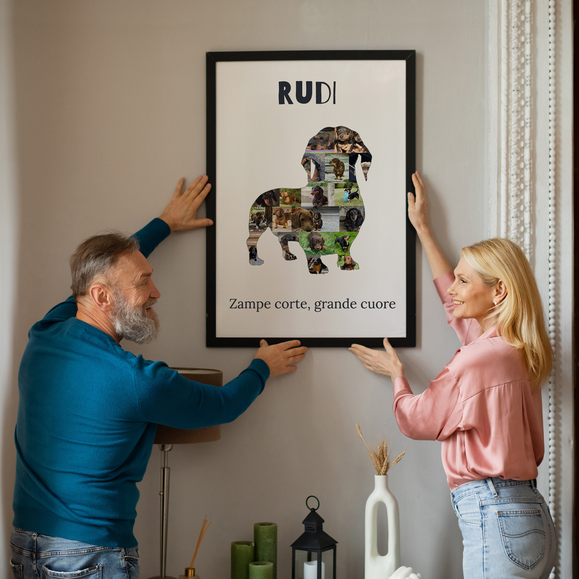 Collage personalizzabile per amanti dei Dackel: ricordi creativi con foto e testi unici.