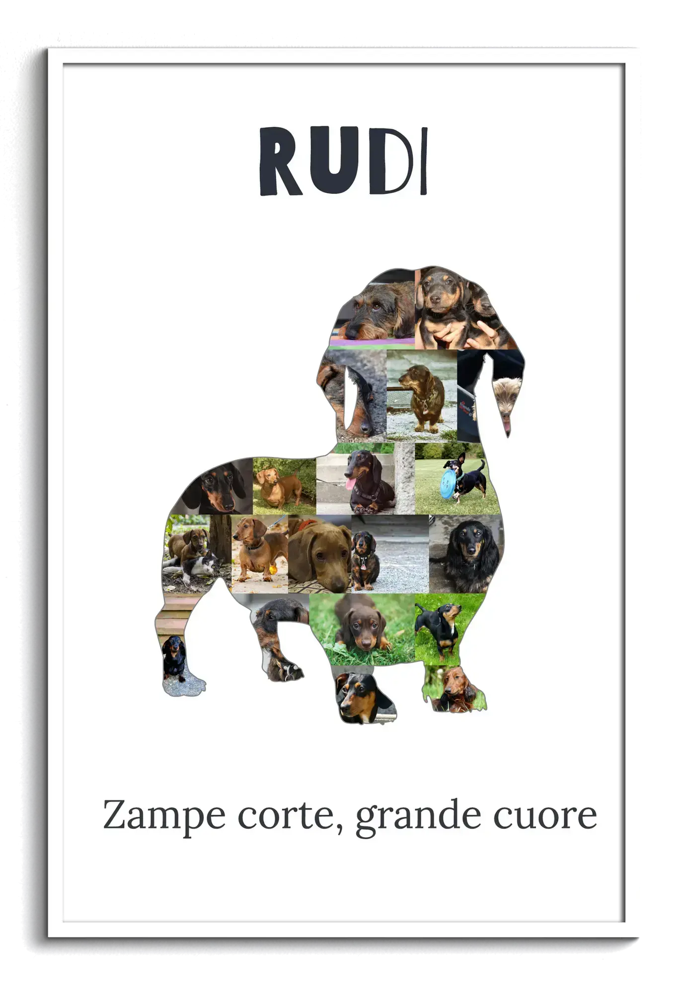 "Crea la tua Collage Dackel: Personalizza con 15-20 Foto e Testo Unico per Amanti di Cani"