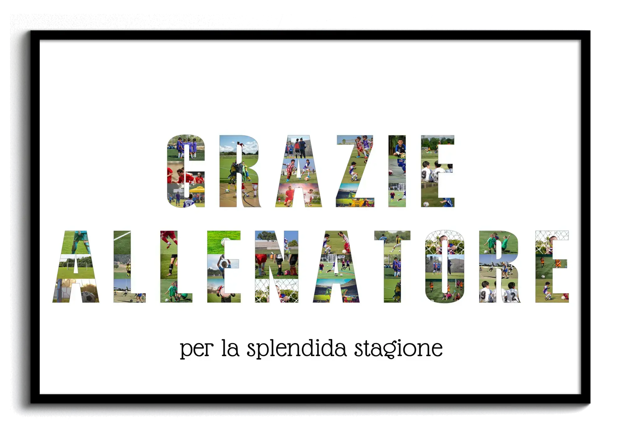 Collage fotografica "GRAZIE ALLENATORE" con dedica personalizzabile per un ricordo speciale.