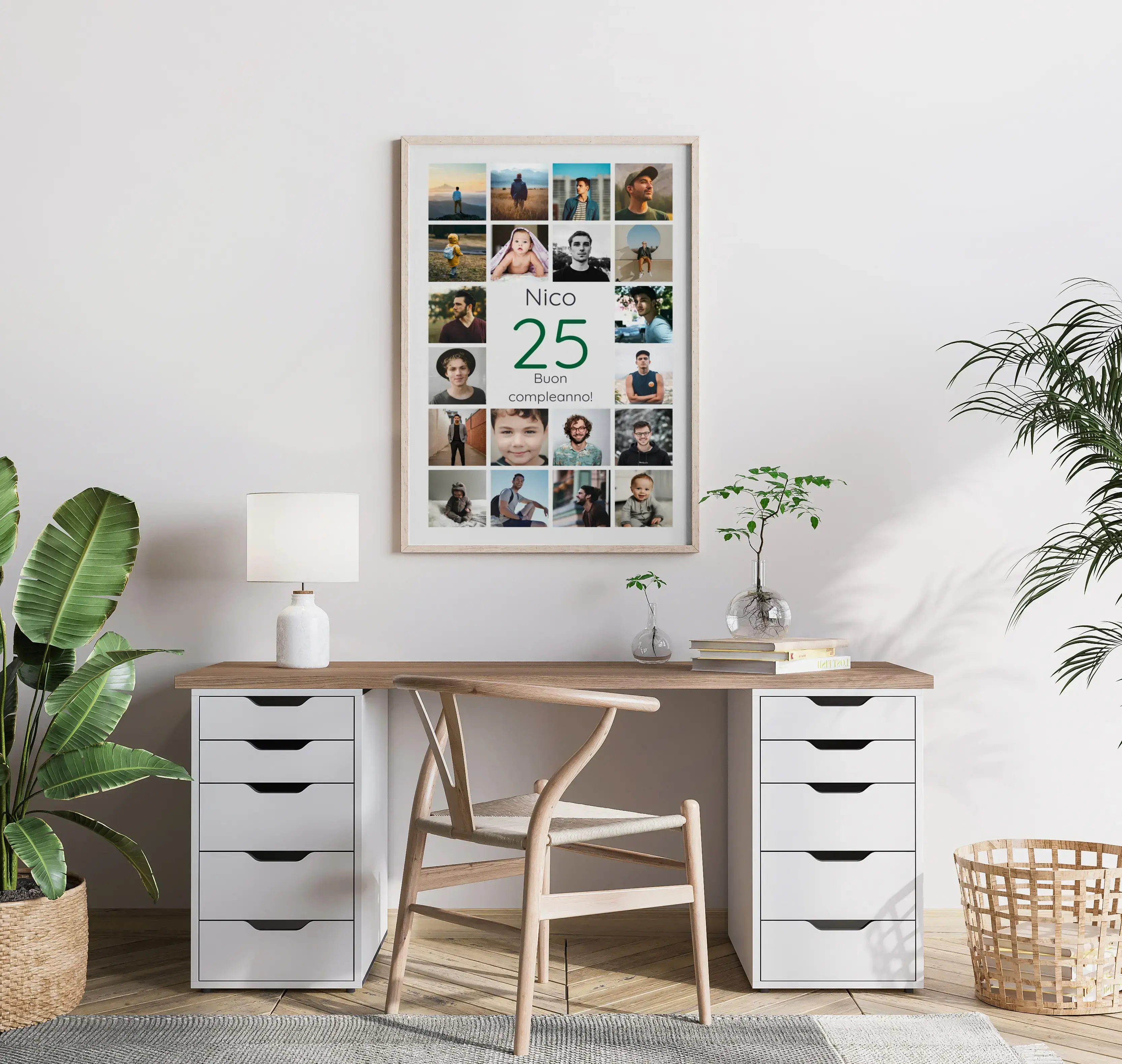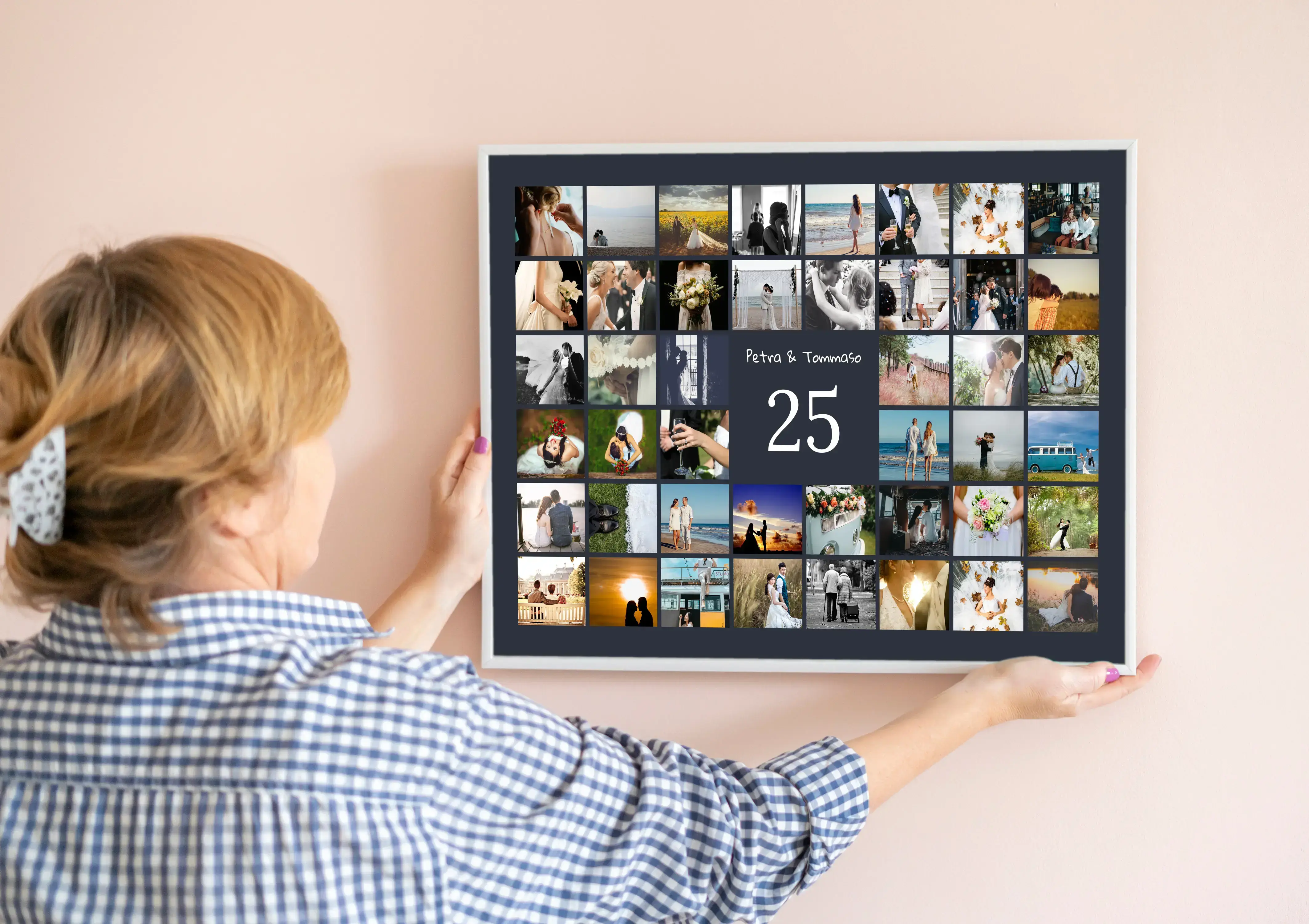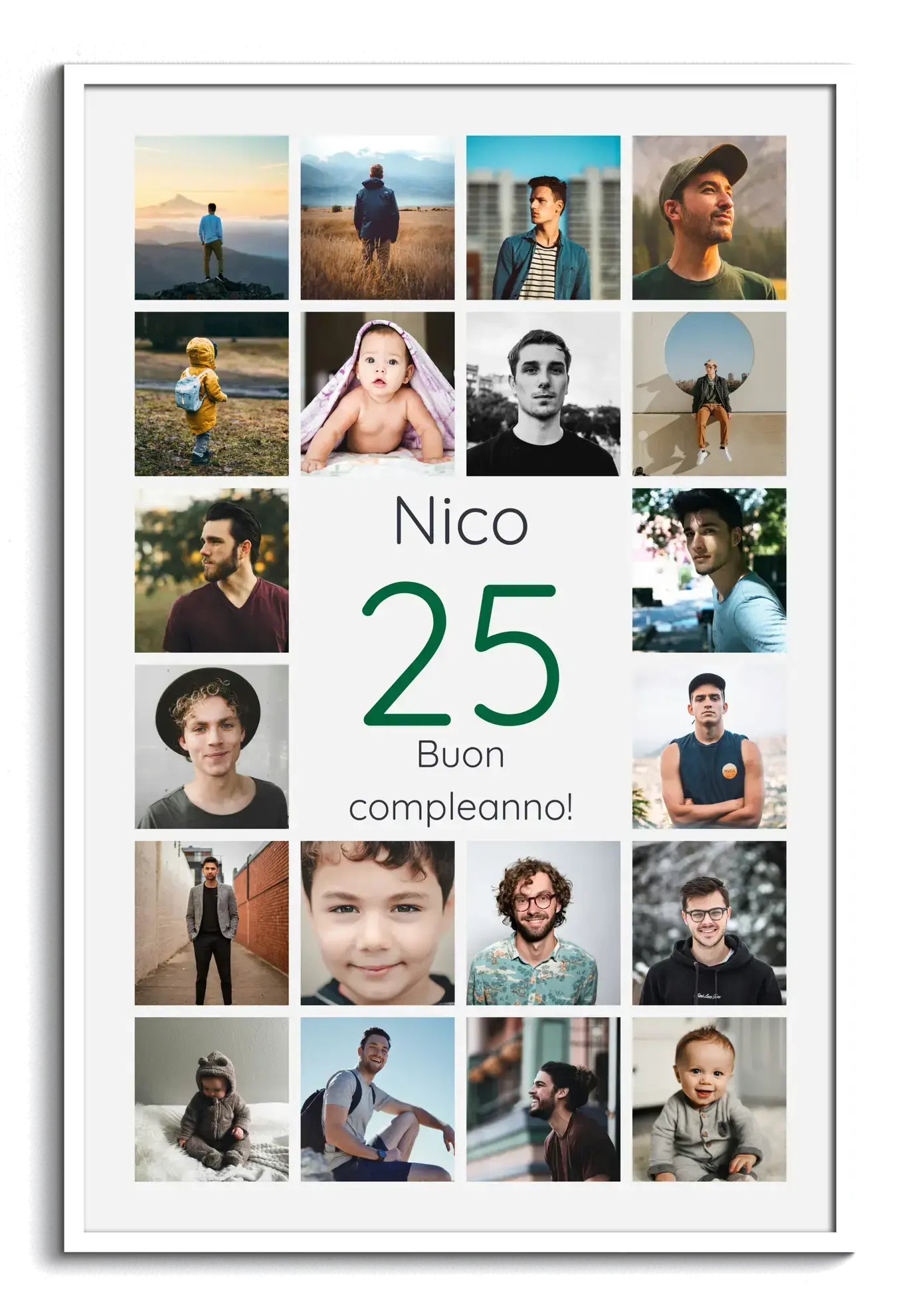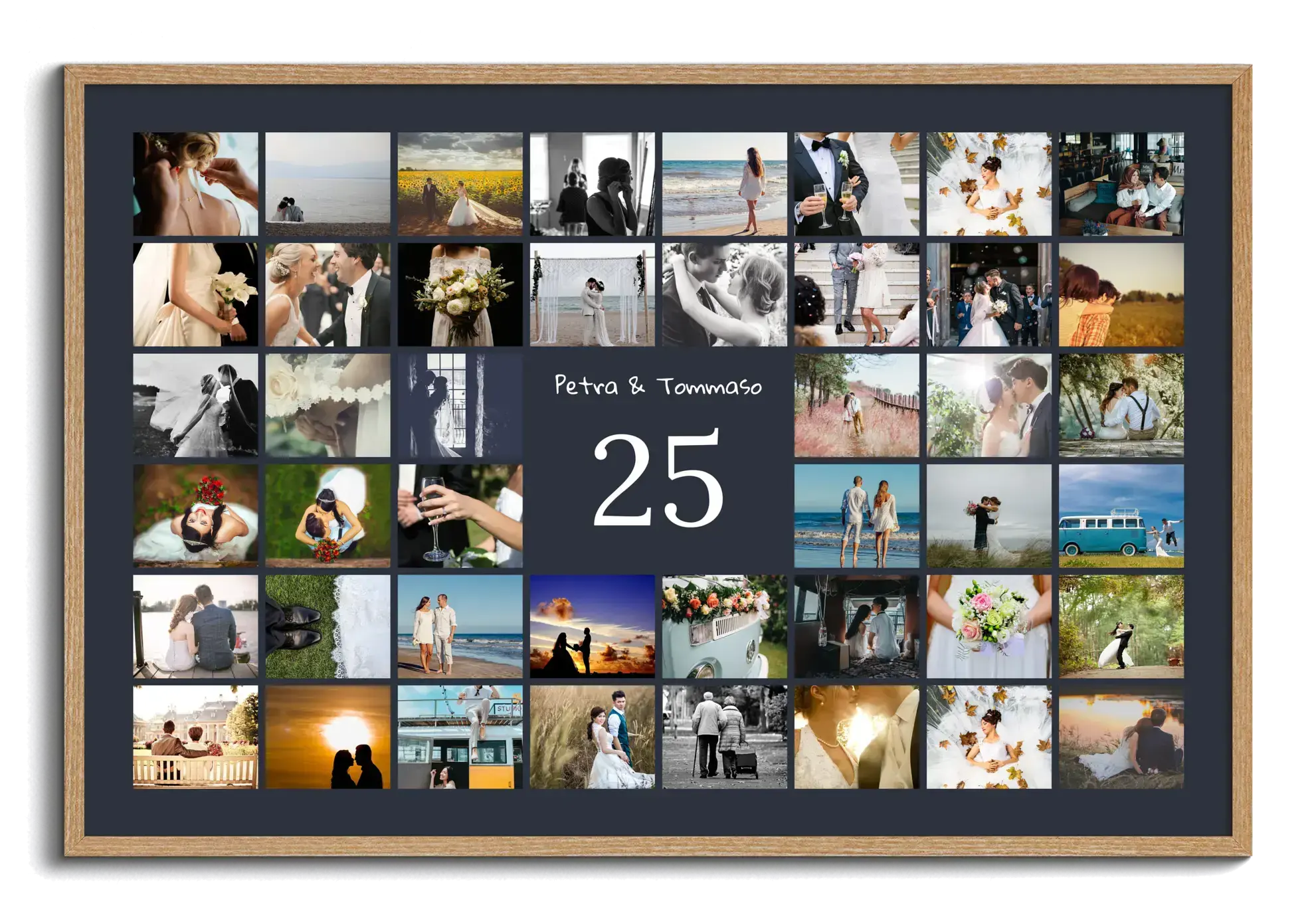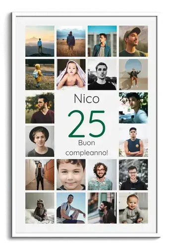 Collage 25 personalizzato: nome, dedica e 20–80 foto. Idea regalo per nozze d’argento e compleanni