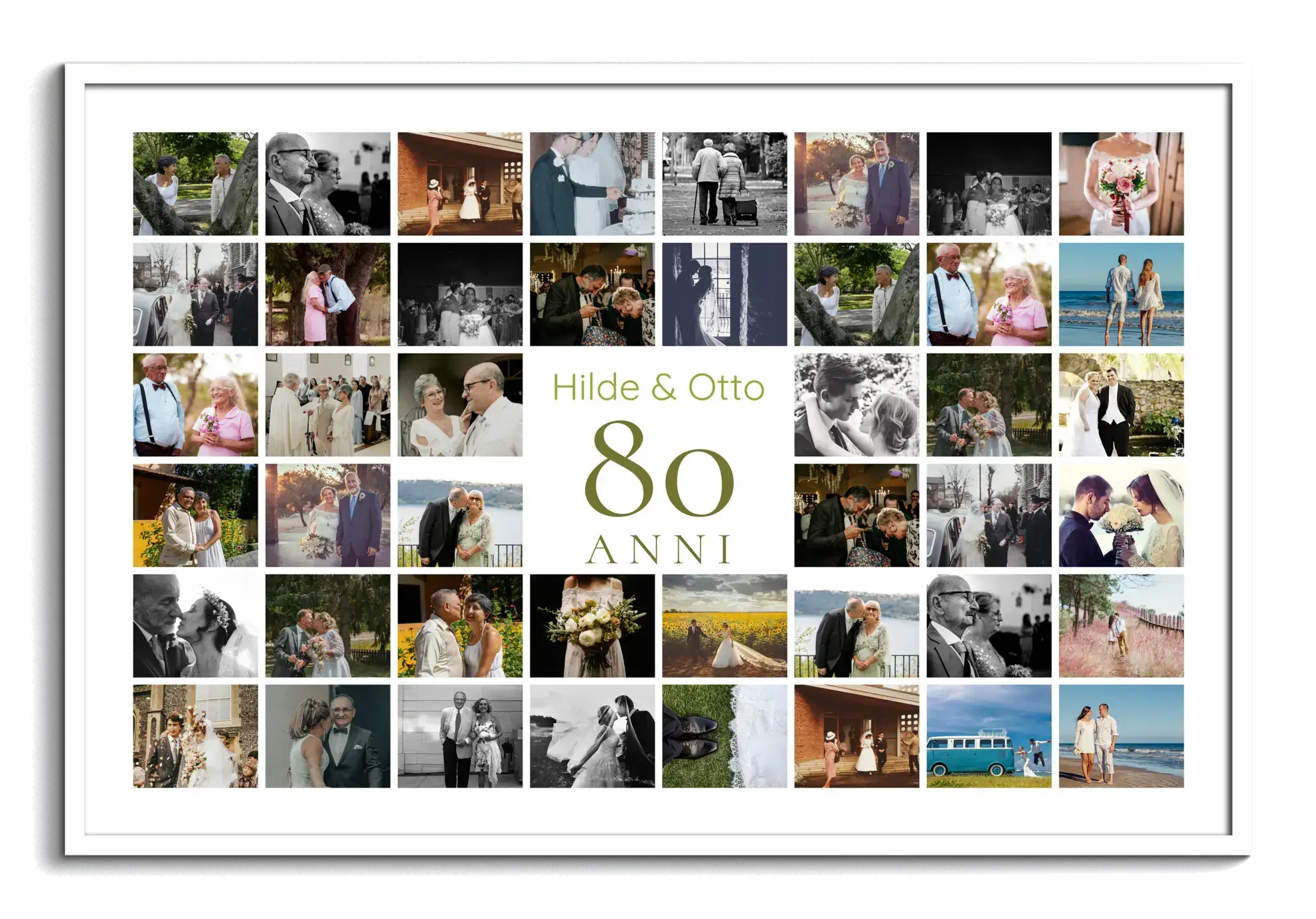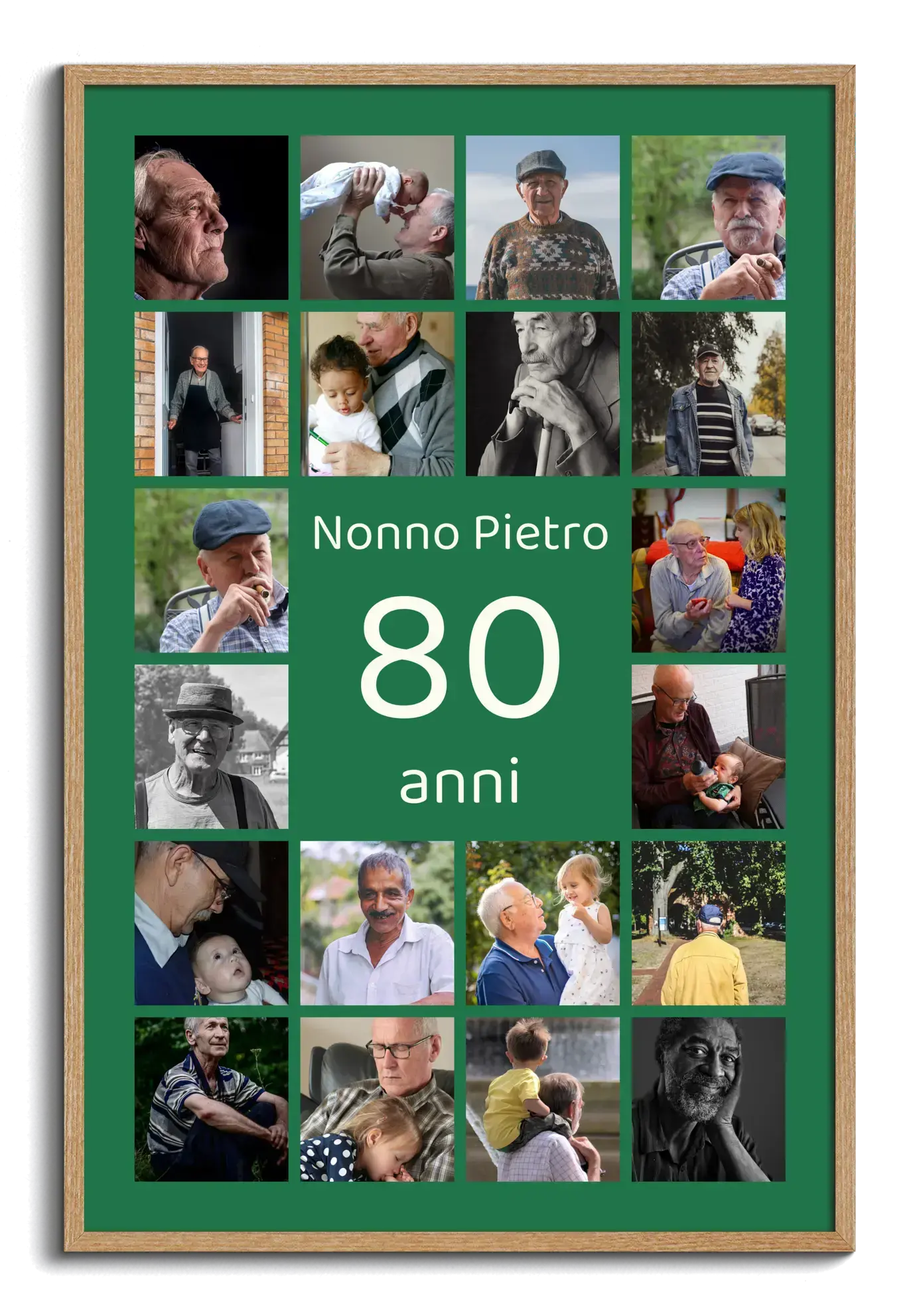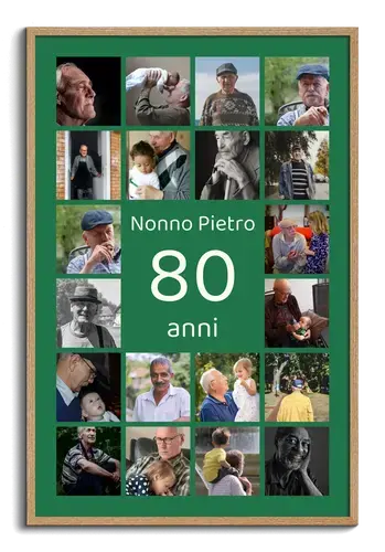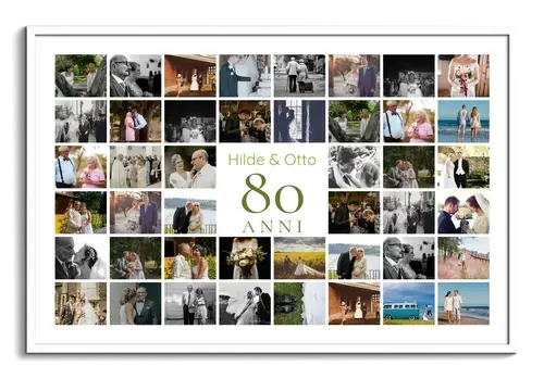 Collage 80 personalizzabile con nome, dedica e 20–80 foto: per 80° compleanno o anniversario.