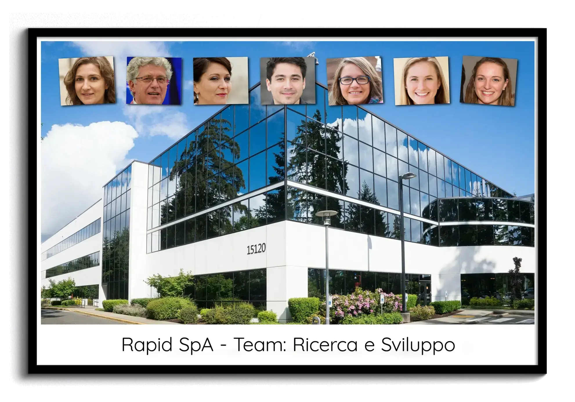 Crea la tua fotocollage personalizzata e trasforma i tuoi momenti speciali in un capolavoro unico. Con la nostra opzione di stampa su Alu-Dibond, puoi realizzare una composizione che combina un grande foto di sfondo, come il tuo edificio aziendale, con immagini più piccole del tuo team o dipartimento. Un'idea perfetta per un dono d'addio o un'esposizione in ufficio, completata da testi personalizzabili come "Rapid AG - Team: Ricerca & Sviluppo".