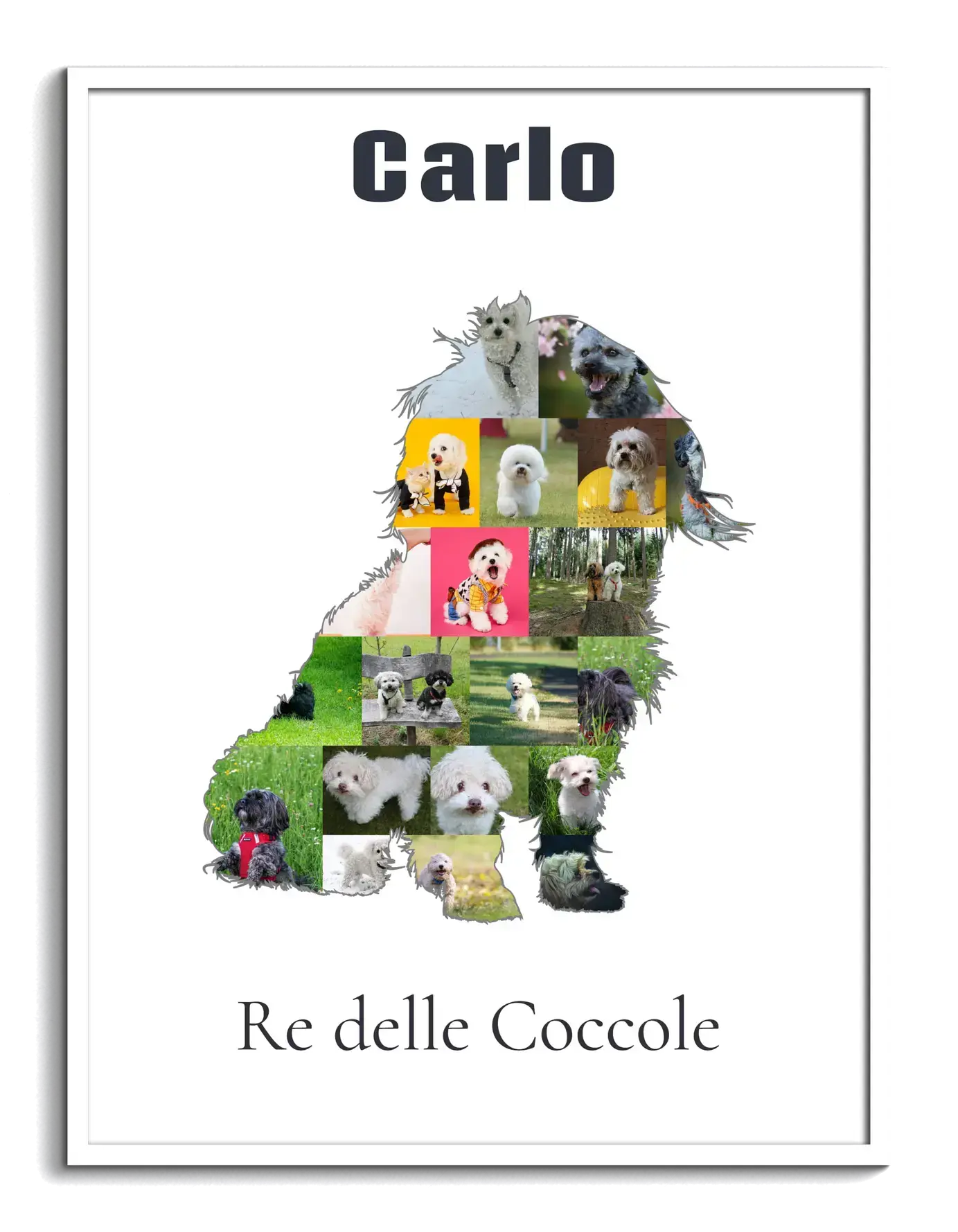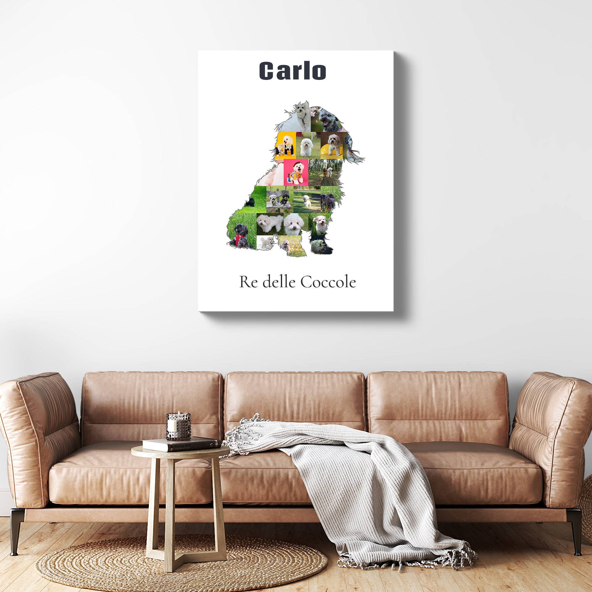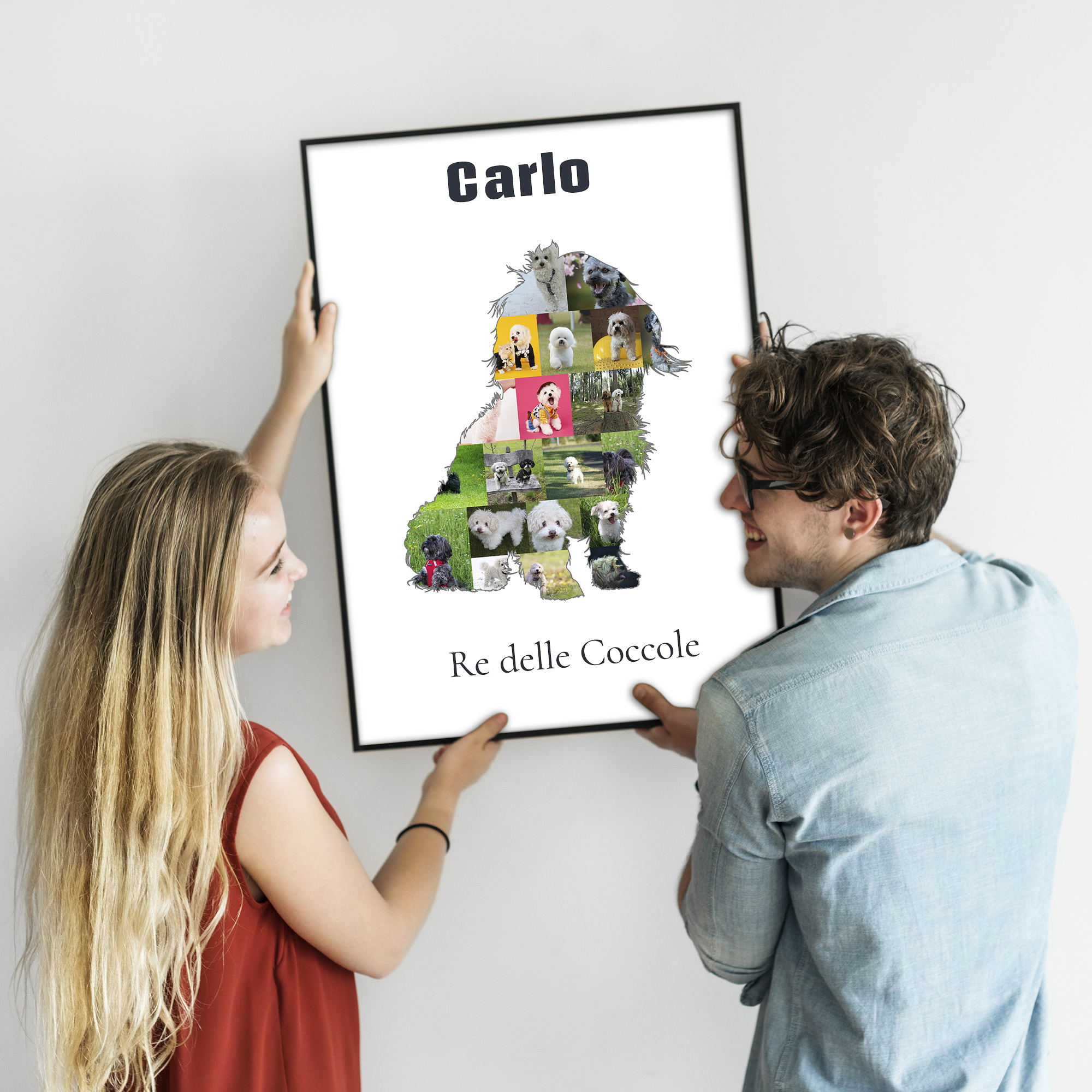 La nostra fotocollage personalizzata è perfetta per celebrazioni come compleanni, anniversari o semplicemente per creare un tocco personale nel tuo salotto. È un regalo ideale per amici o familiari che amano i cani o decorazioni uniche.