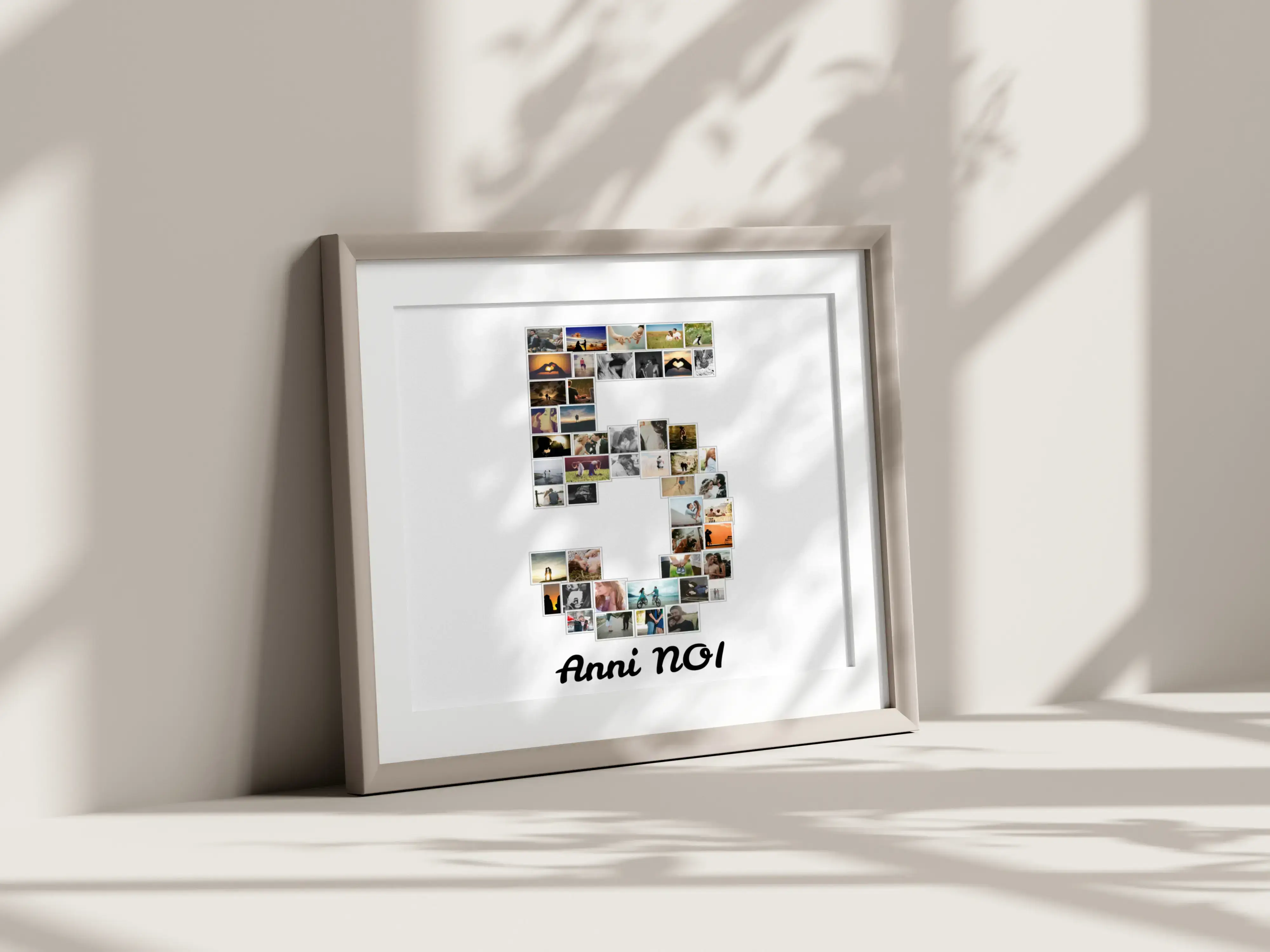 Scopri la nostra fotocollage personalizzabile e rendi ogni occasione indimenticabile con un tocco artistico unico. Immagina una cifra speciale come il numero 5, composta da una selezione di foto significative. Puoi scegliere da 1 a 100 immagini per creare un collage straordinario, perfetto per celebrare anniversari, fiducia aziendale o compleanni.