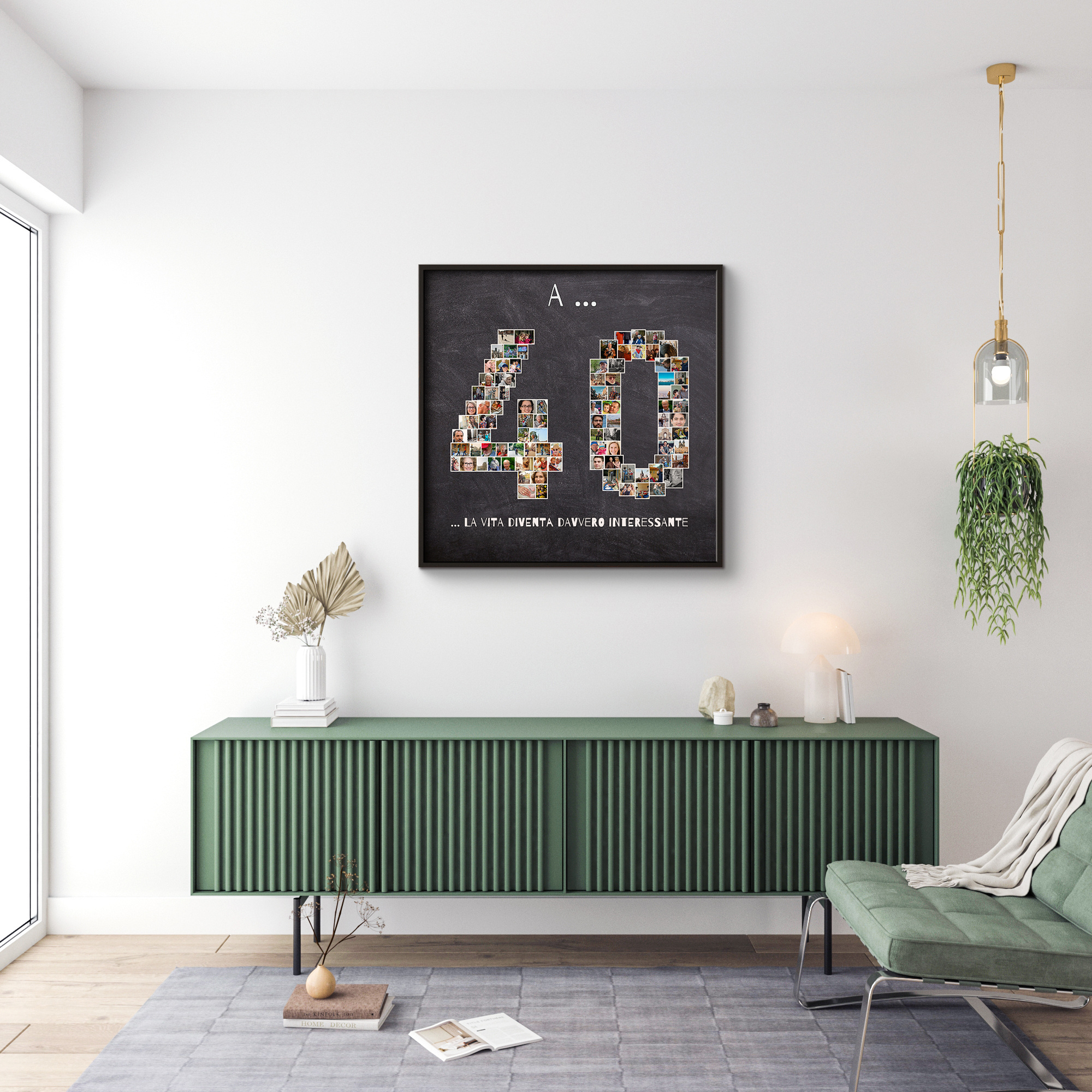 Scopri la magia di creare una fotocollage unica per un'occasione speciale come il tuo quarantesimo compleanno. Lascia che i Momenti più importanti della tua vita diventino parte di un'opera d'arte, con la possibilità di personalizzare i numeri con tante piccole foto accompagnate da un messaggio scherzoso. Ideale per regalare o decorare la tua festa.