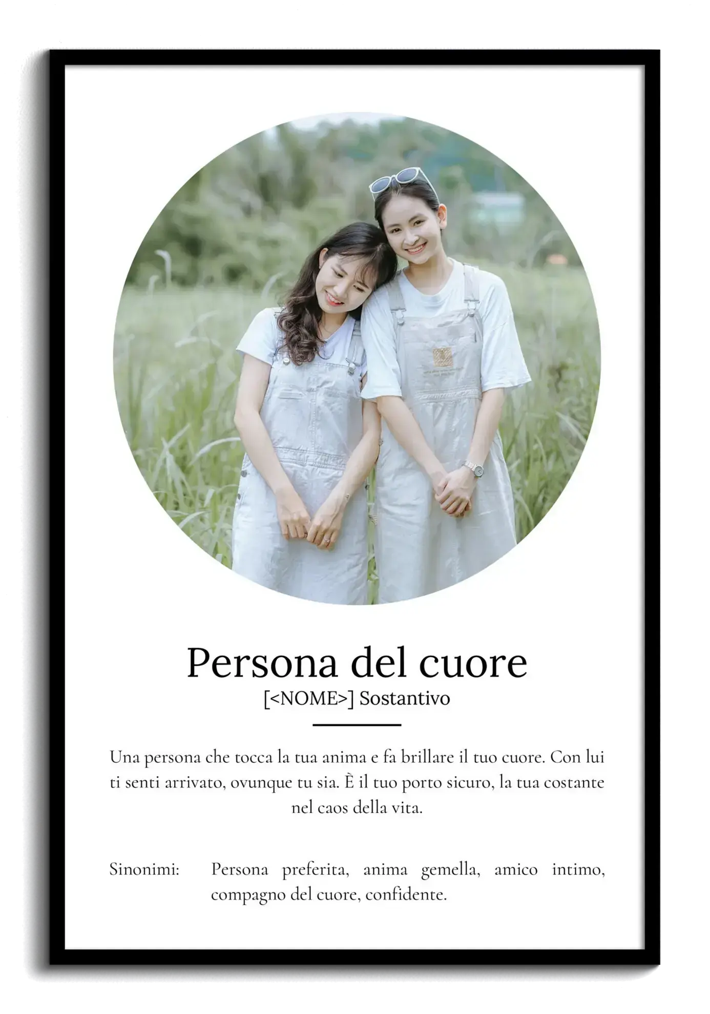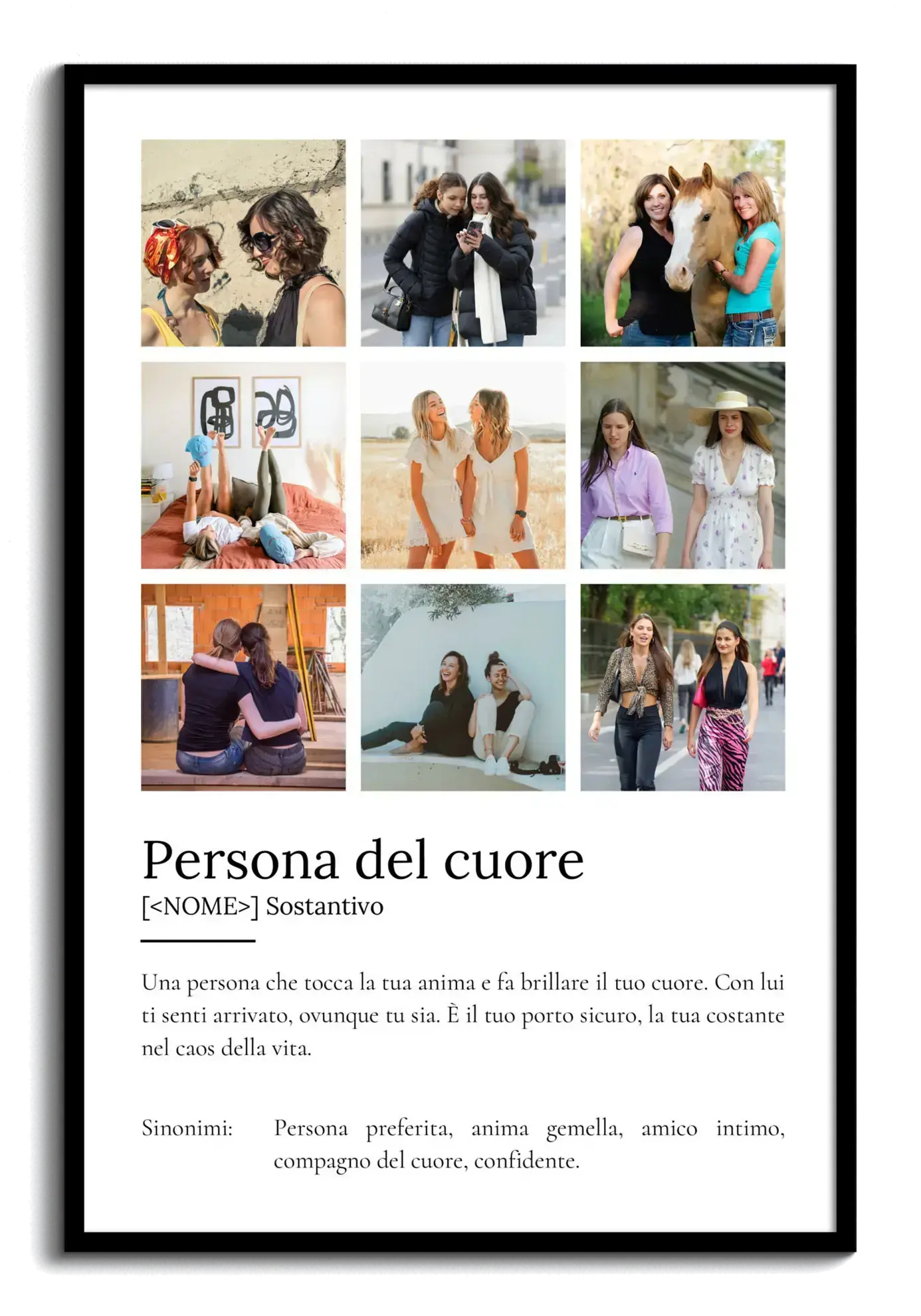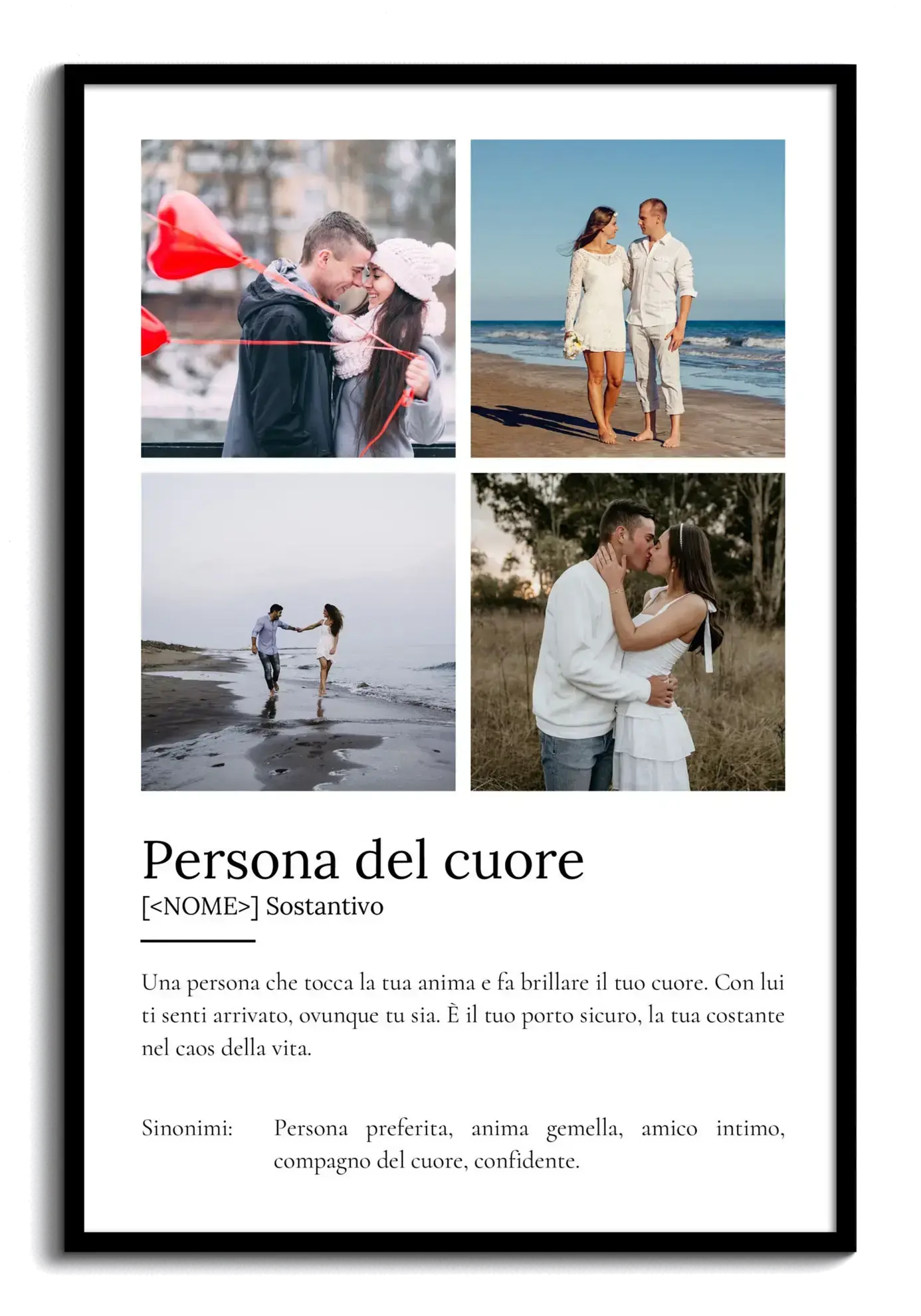 Perfetti per compleanni, anniversari o semplicemente per dire grazie, i nostri poster personalizzati sono un modo commovente e personale di esprimere i tuoi sentimenti. La possibilità di personalizzare il testo e l'aspetto rende ogni pezzo unico e significativo.