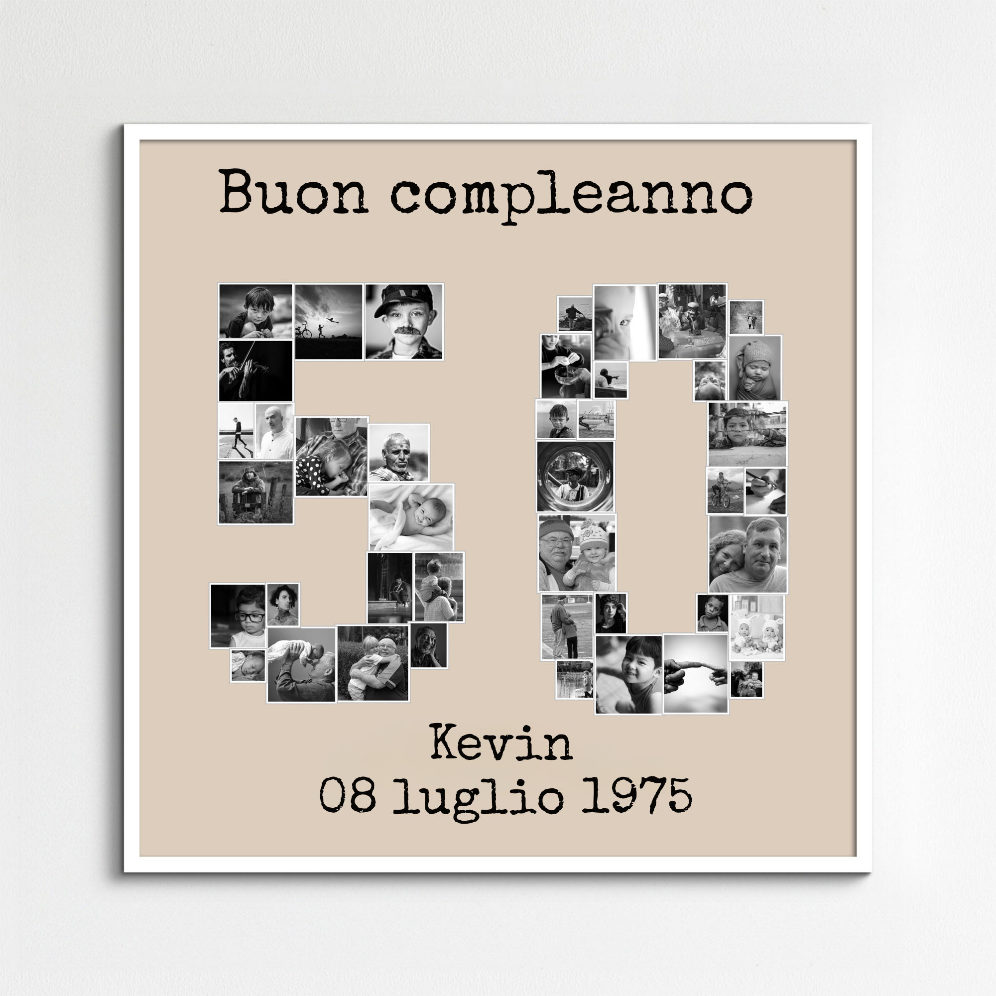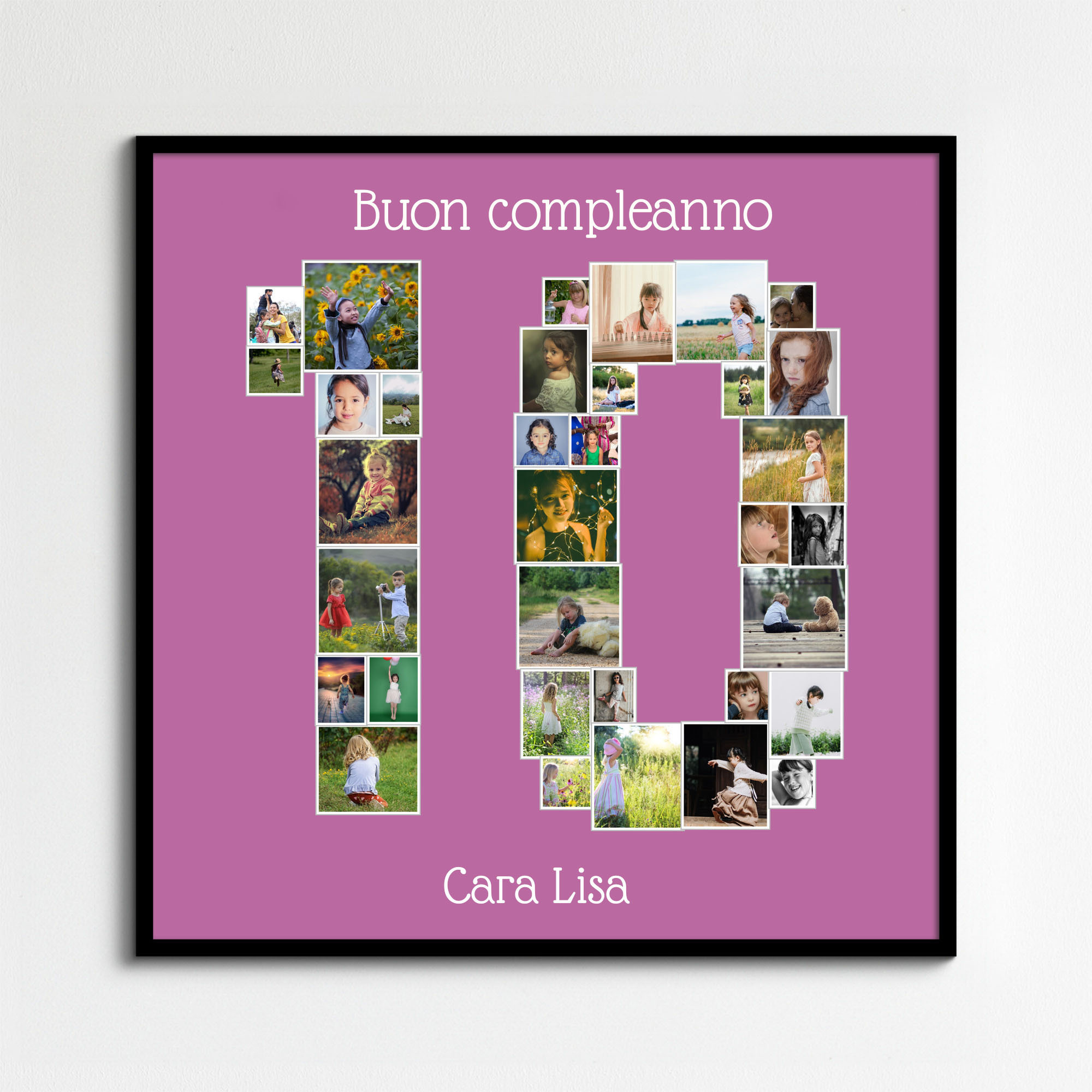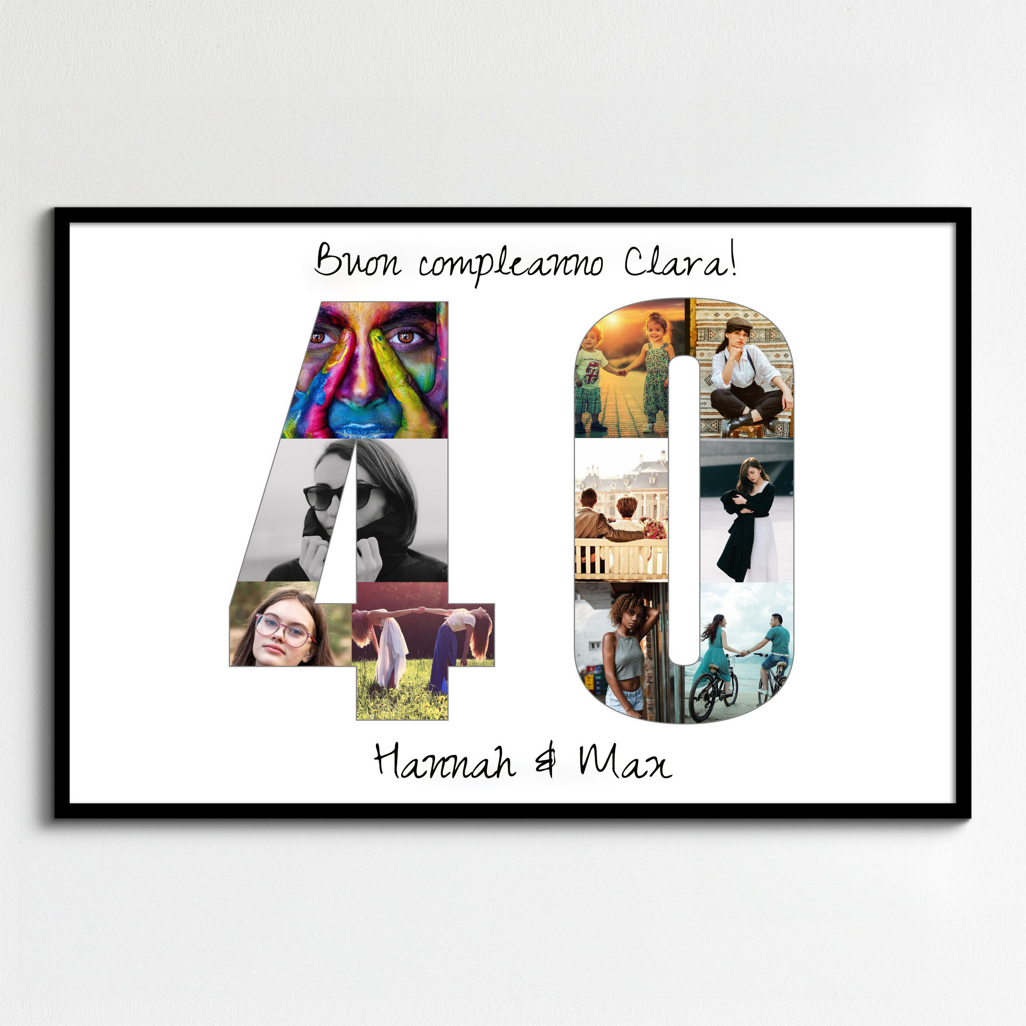 Collage numerica ideale per compleanni o anniversari, personalizzabile con foto e testo.