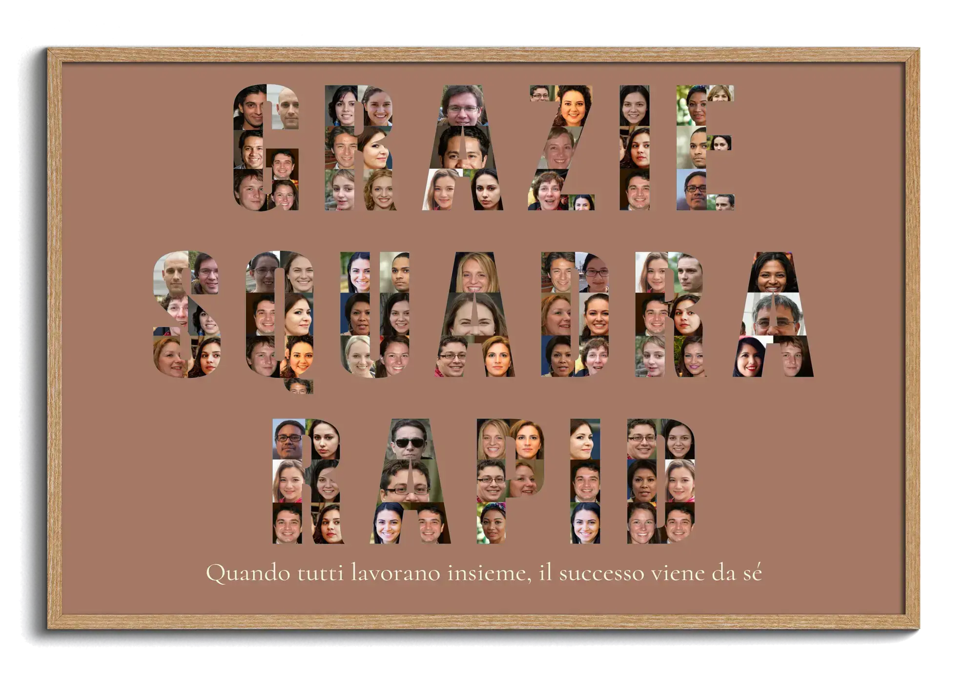 "Esprimi gratitudine con una collage foto personalizzata: 'GRAZIE TEAM RAPID', unica e speciale."