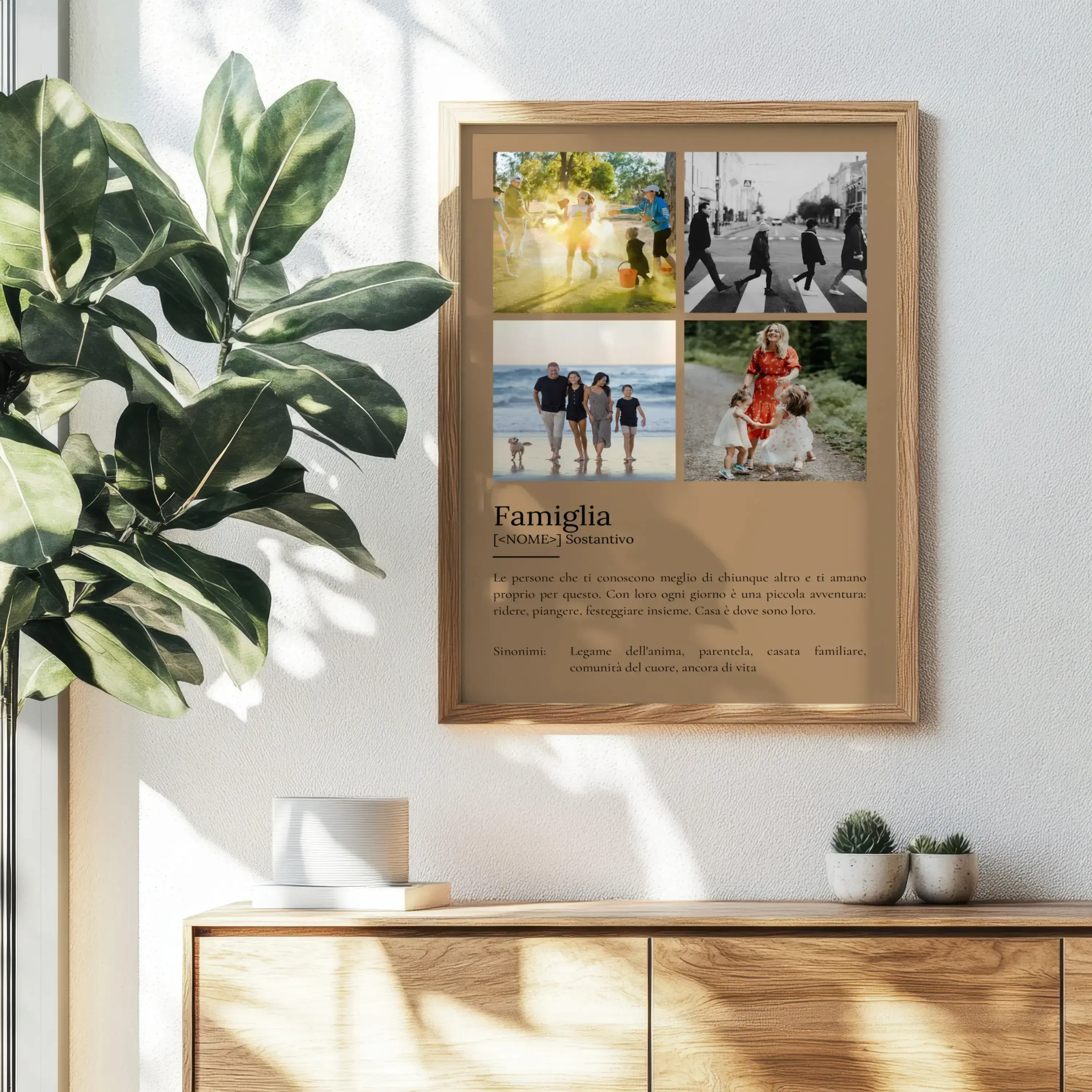 Un poster definizione 'Famiglia': un regalo personalizzato con foto e testo emozionale.
