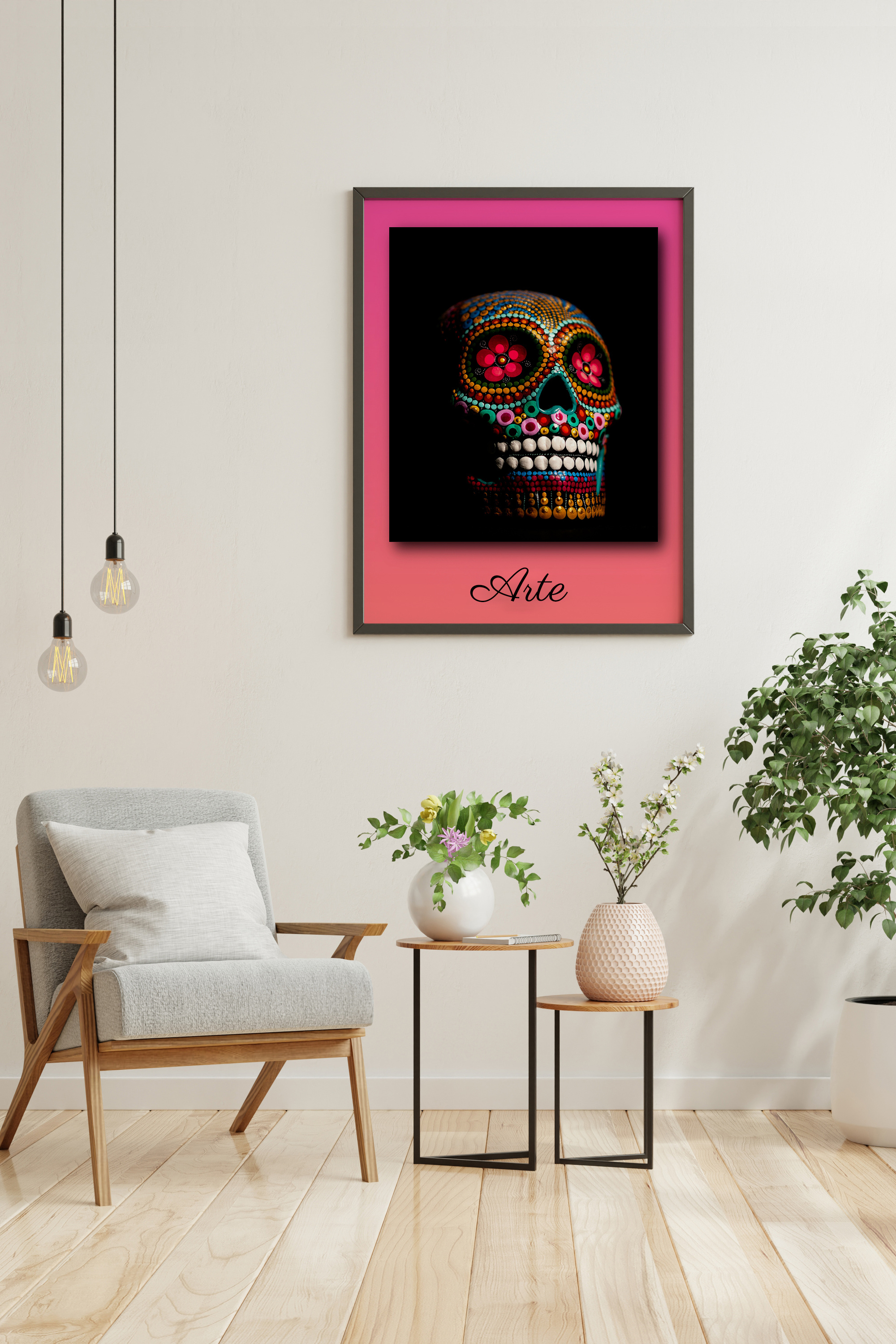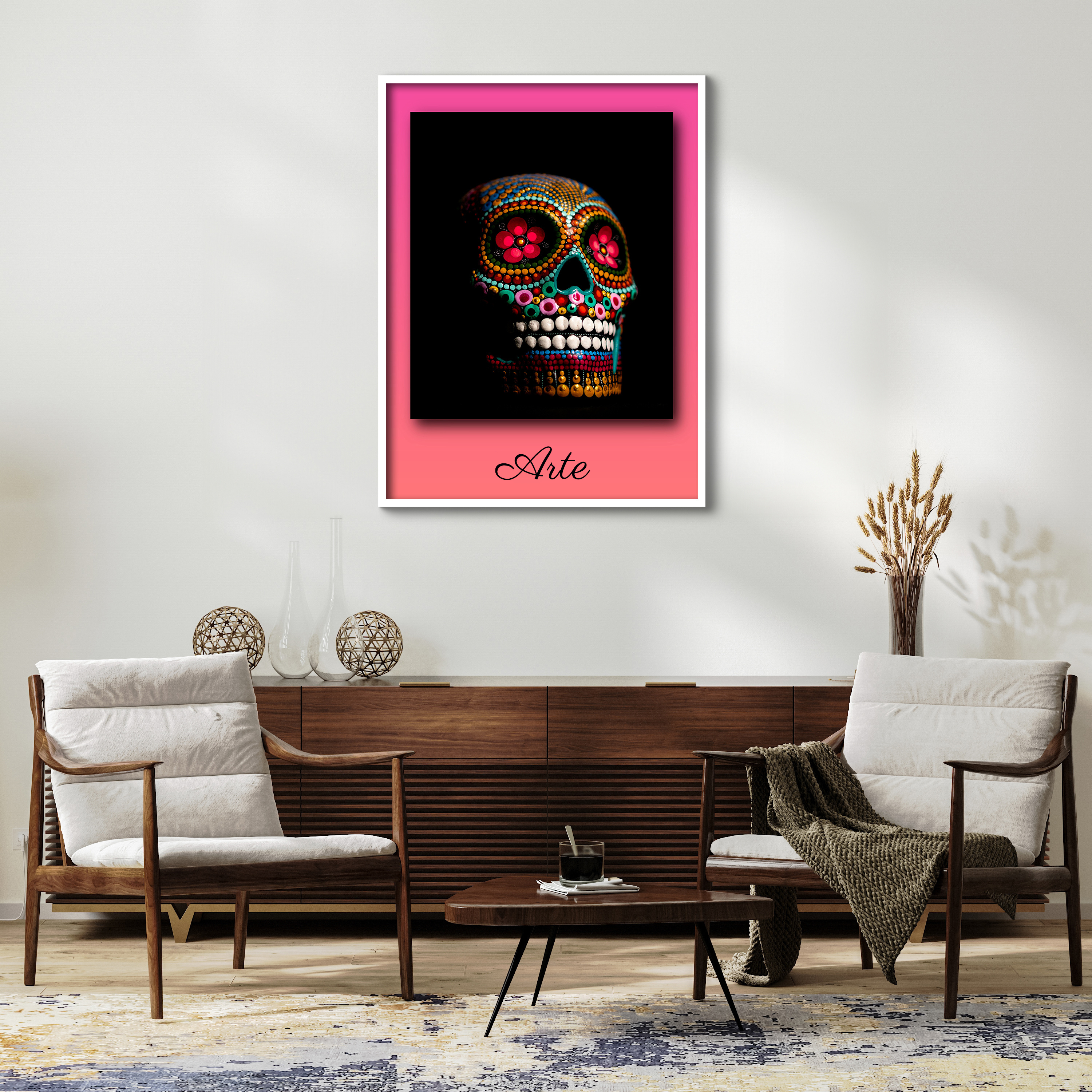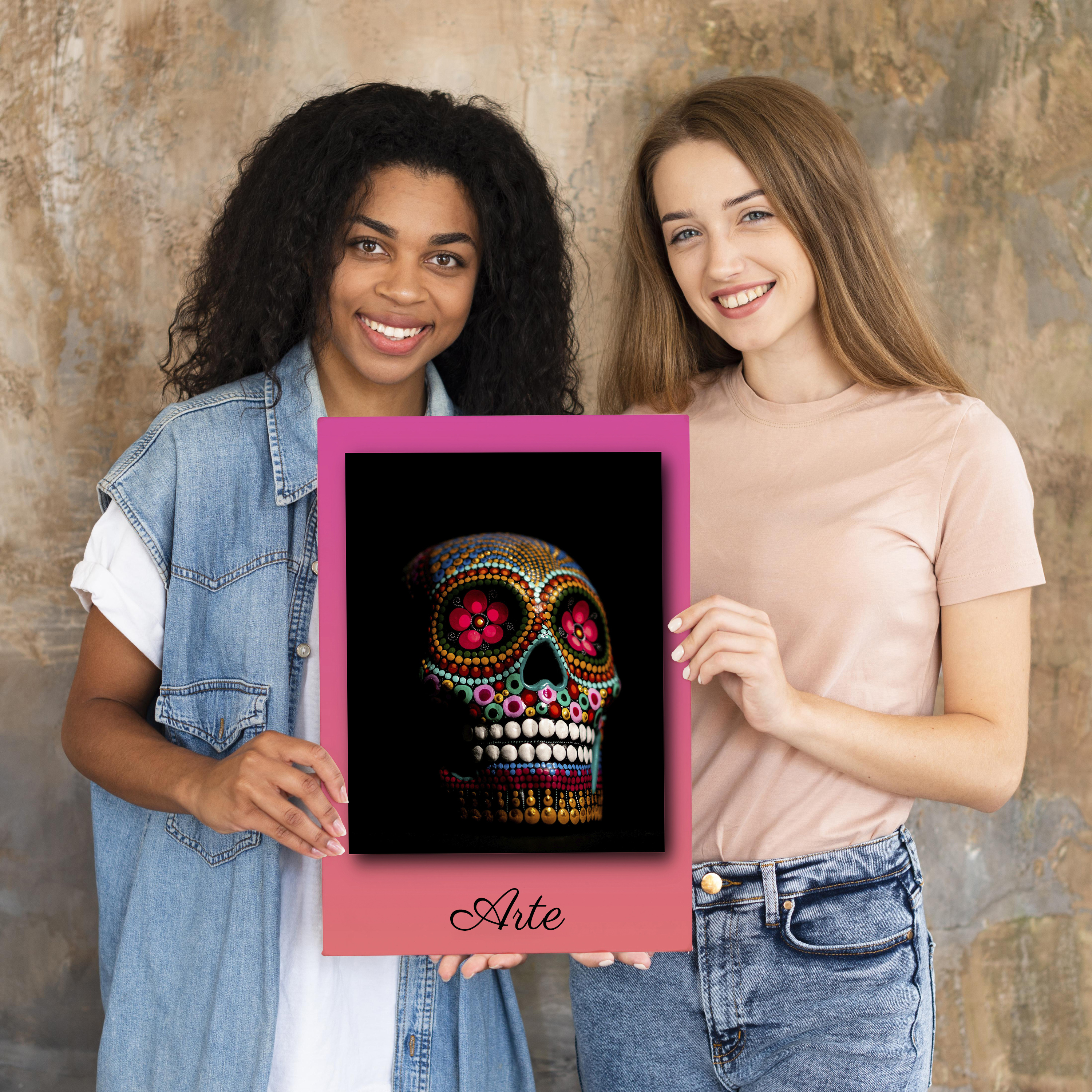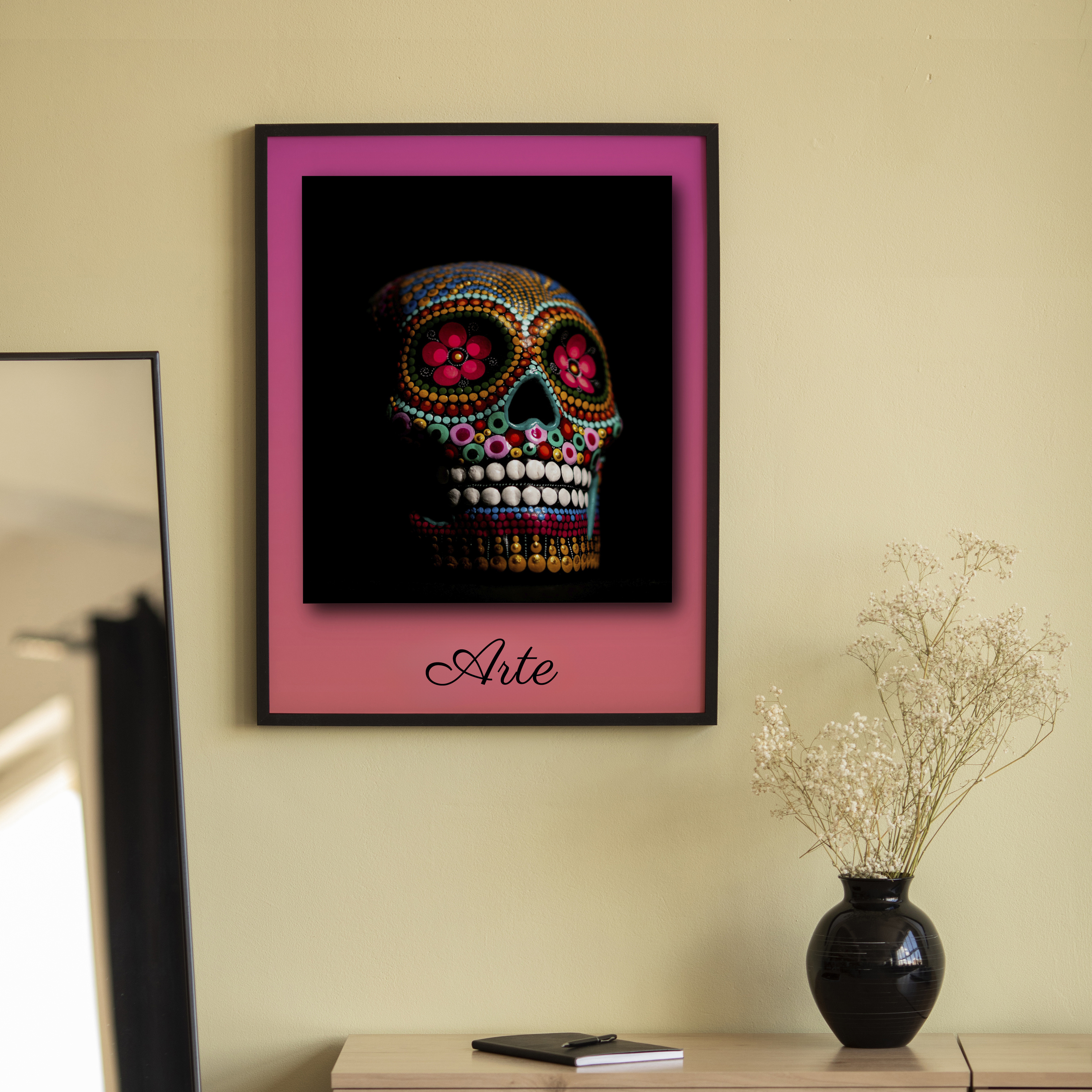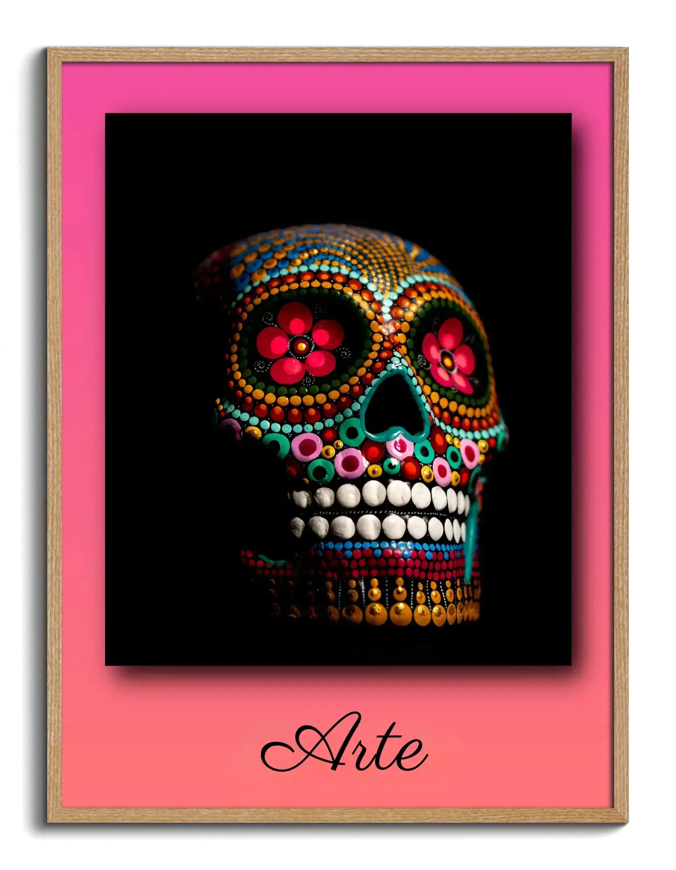 Crea la tua Fotocollage personalizzata e trasformala in una splendida decorazione o in un regalo unico. Con un semplice click, puoi realizzare un poster dai colori vivaci che ritrae un teschio colorato, accompagnato dalla scritta 'Kunst'. Perfetto per gli amanti dell'arte e della creatività, questa composizione artistica aggiunge un tocco distintivo a qualsiasi spazio.