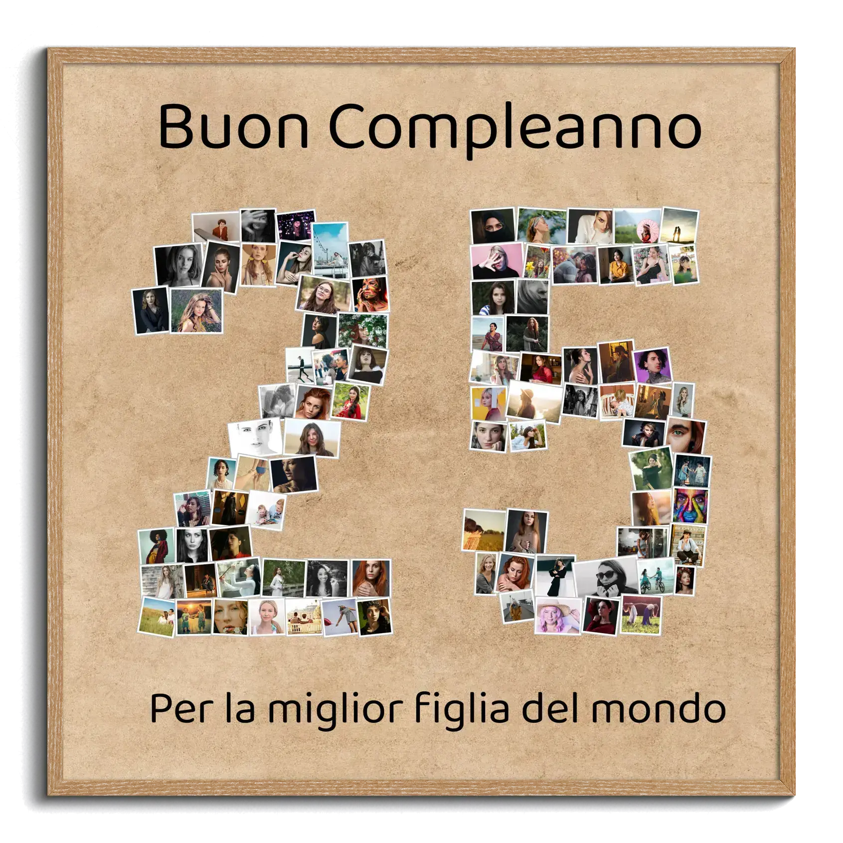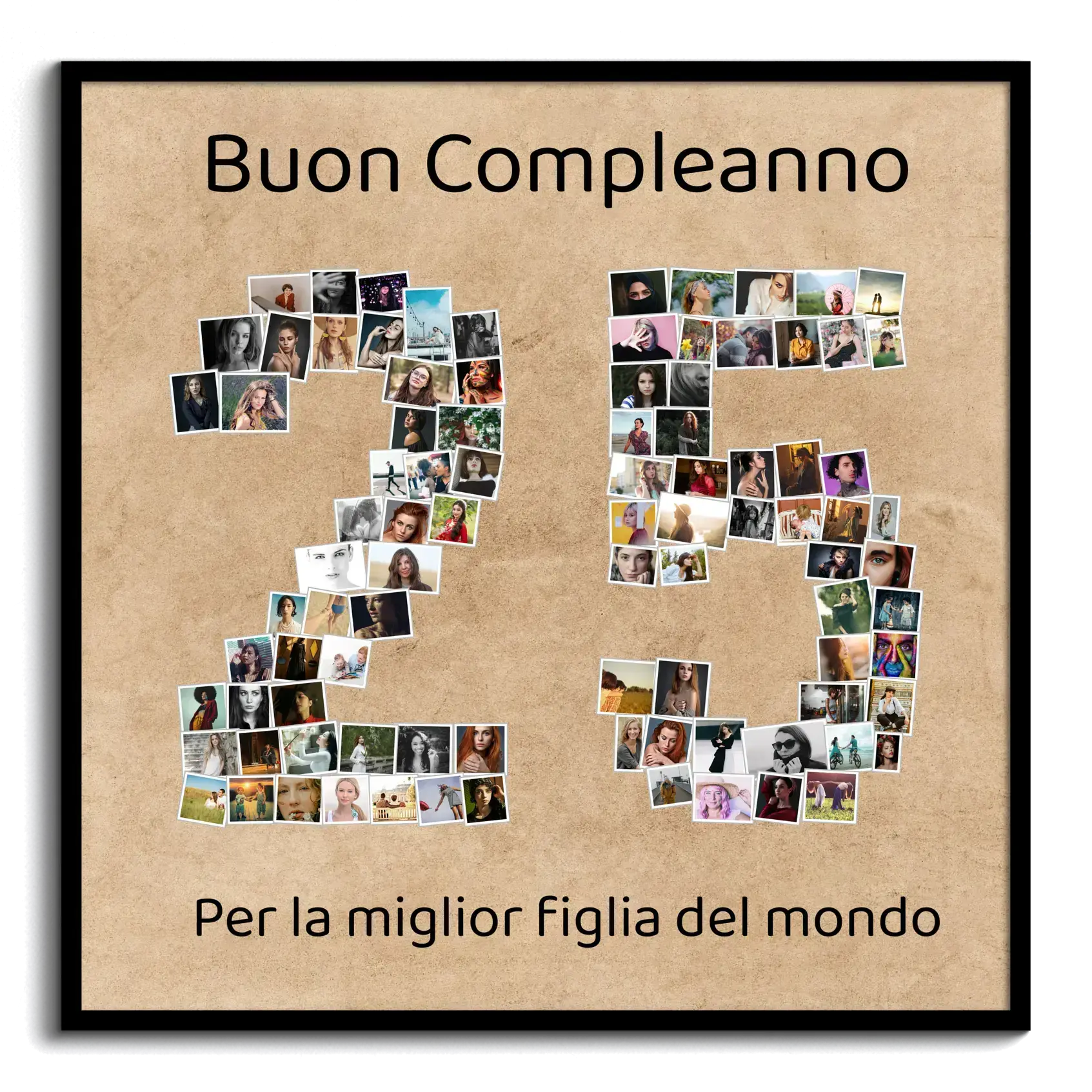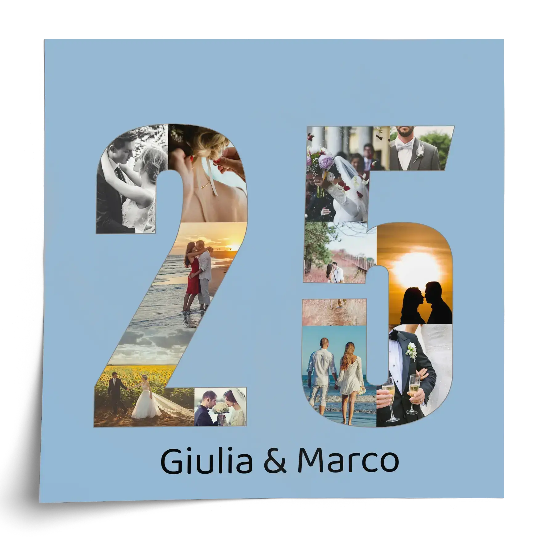 Crea la tua Collage Fotografica personalizzata per celebrare un'occasione speciale con il nostro design a numero '25'. Componi la tua storia con le tue foto preferite: da 1 a 100 immagini si uniscono per formare il numero perfetto per un'anniversario d'argento o un giubileo aziendale. Immergiti ora nella creazione di un regalo unico!