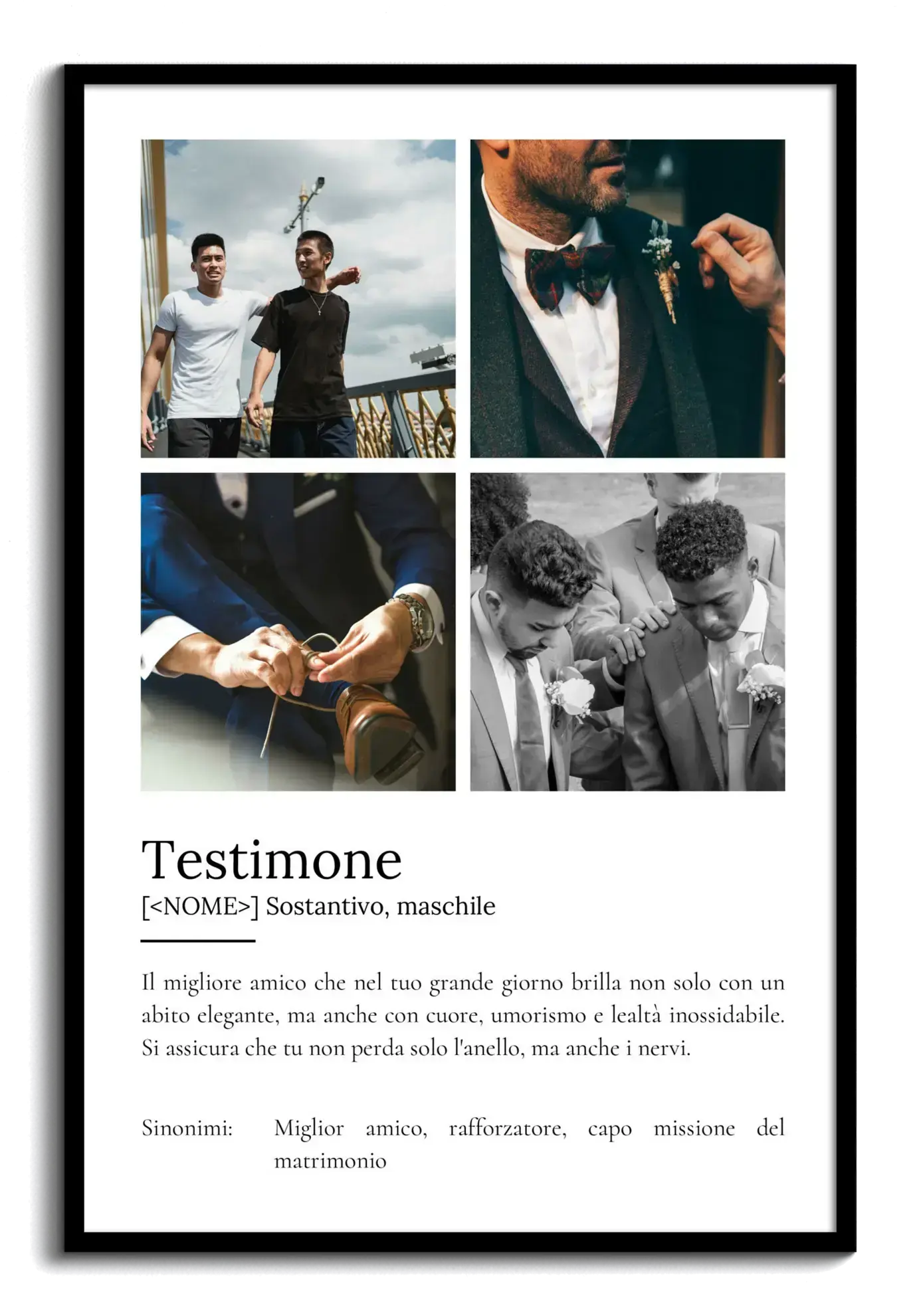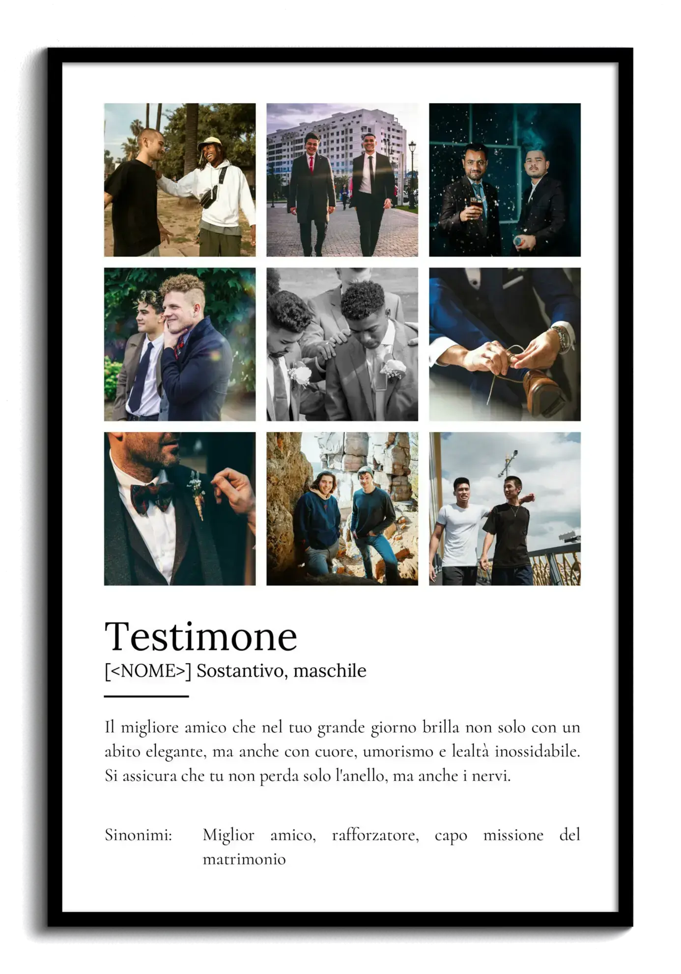 Un regalo personale per il tuo testimone: eleganza e amicizia in un poster unico.