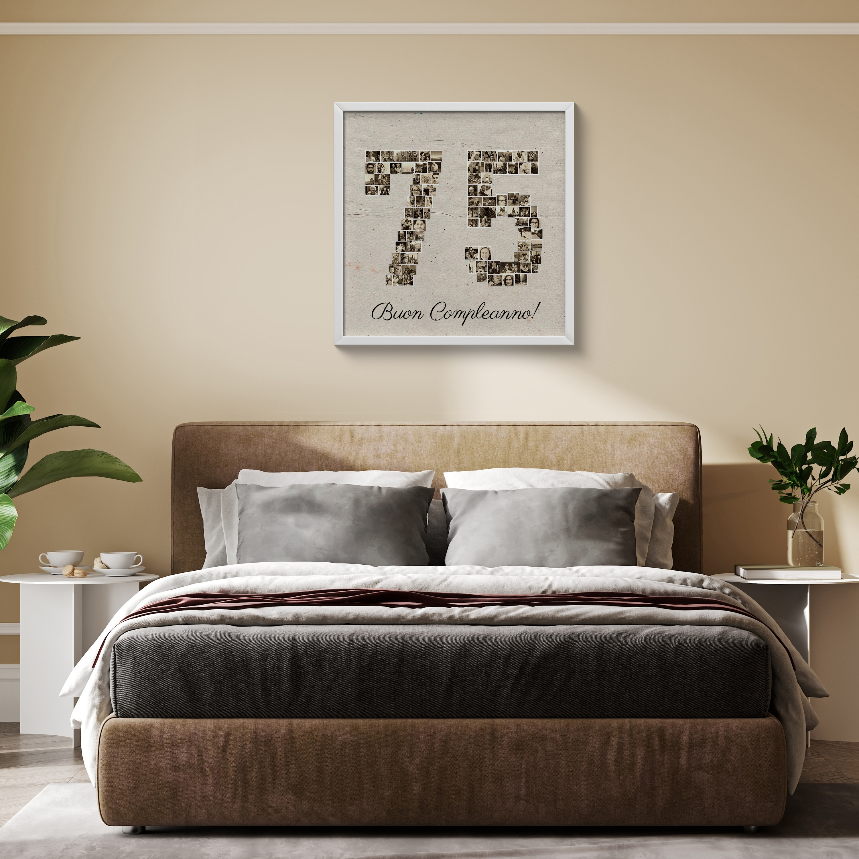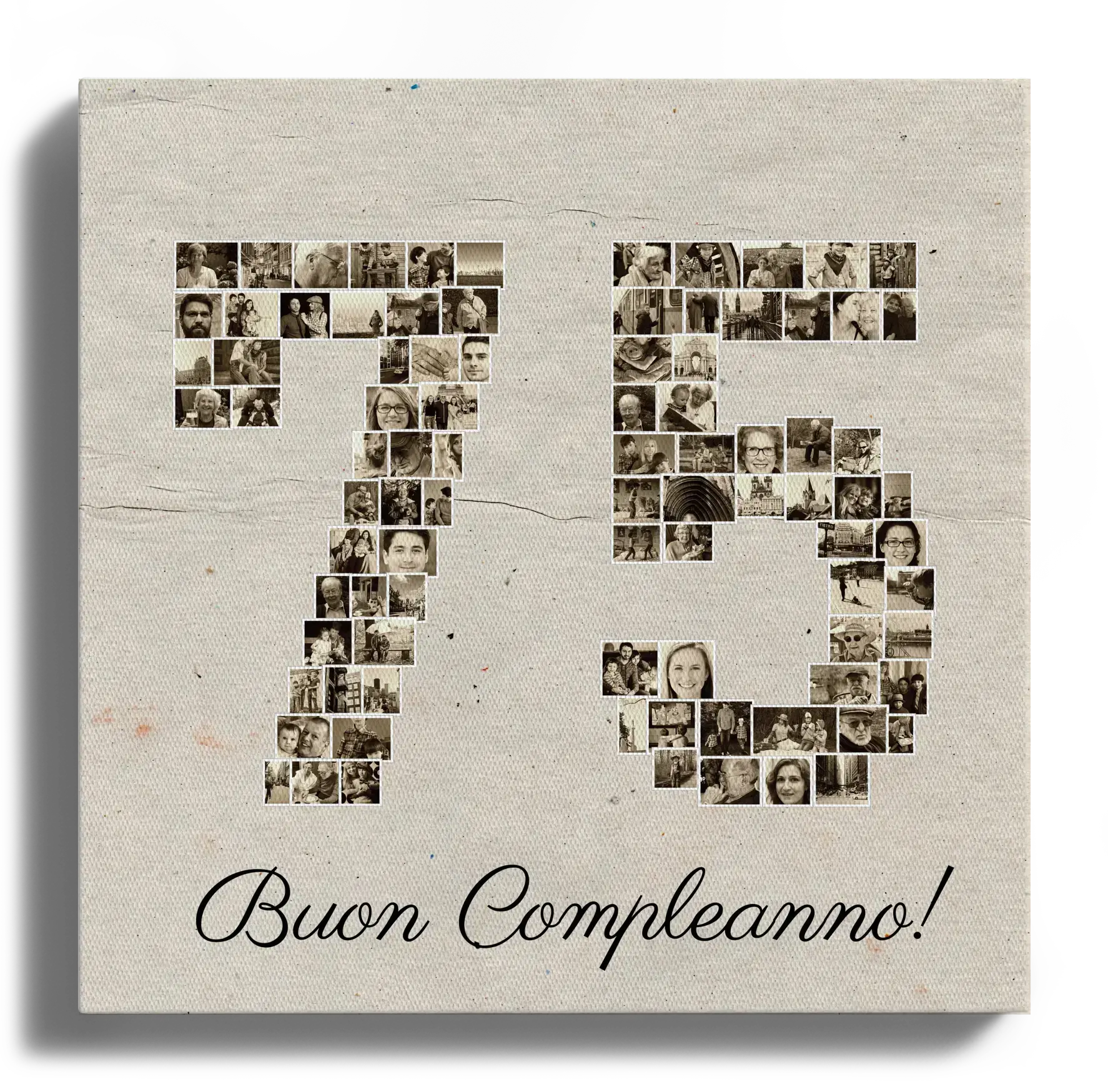 Collage fotografica "75" in seppia, personalizzabile, ideale per regali di compleanno.