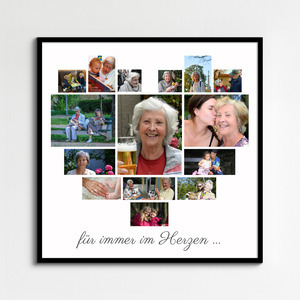 Herzfotocollagen sind eine romantische und herzliche Art, deine Liebe und Zuneigung bildlich auszudrücken. Ideal für Jahrestage, Valentinstag oder als Liebesgeschenk. Wähle deine liebsten gemeinsamen Fotos und gestalte eine Collage in Herzform, die eure gemeinsamen Momente zelebriert. Kreiere jetzt deine persönliche Herzfotocollage und überrasche deine Liebsten!